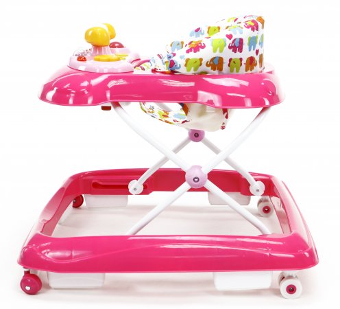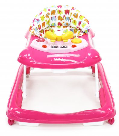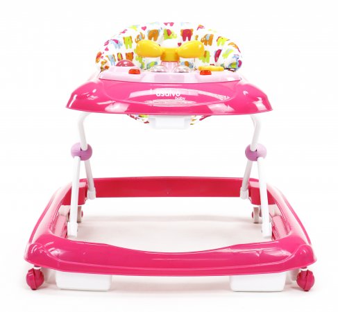 Aktivitetsdelen är utrustad med leksaker, lampor och musik. Gåvagnen har hjul på undersidan och 6 bromsklossar som säkerställer att gåstolen låses när det kommer höjdskillnader.
