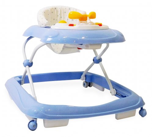 Aktivitetsdelen är utrustad med leksaker, lampor och musik. Gåvagnen har hjul på undersidan och 6 bromsklossar som säkerställer att gåstolen låses när det kommer höjdskillnader.