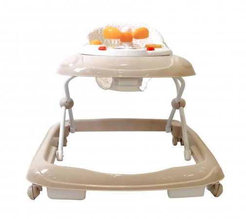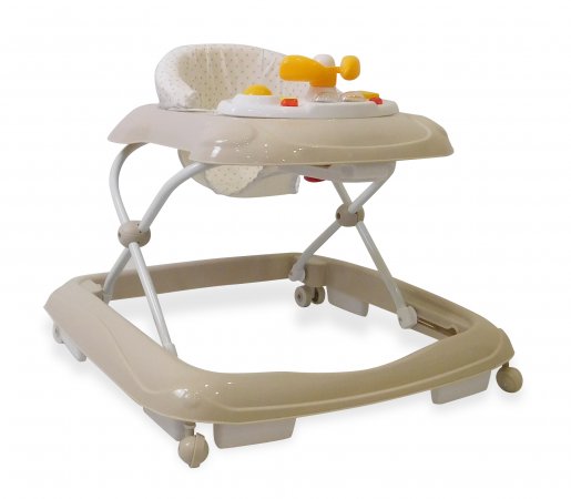 Aktivitetsdelen är utrustad med leksaker, lampor och musik. Gåvagnen har hjul på undersidan och 6 bromsklossar som säkerställer att gåstolen låses när det kommer höjdskillnader.