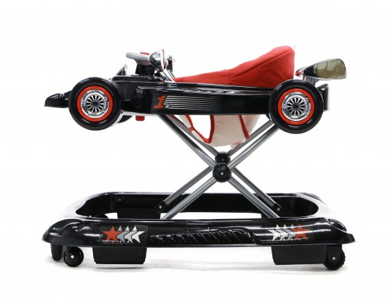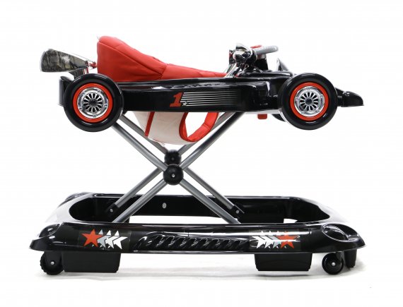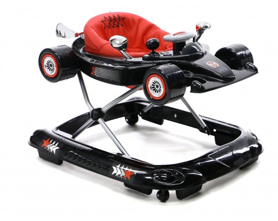 Aktivitetsdelen är utrustad med leksaker, lampor och musik. Gåvagnen har hjul på undersidan och 6 bromsklossar som säkerställer att gåstolen låses när det kommer höjdskillnader.