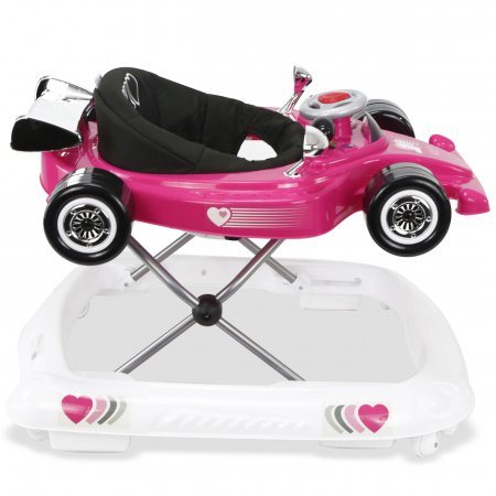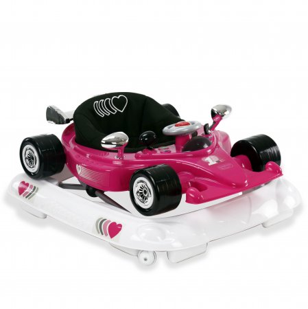 Aktivitetsdelen är utrustad med leksaker, lampor och musik. Gåvagnen har hjul på undersidan och 6 bromsklossar som säkerställer att gåstolen låses när det kommer höjdskillnader.