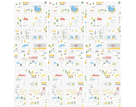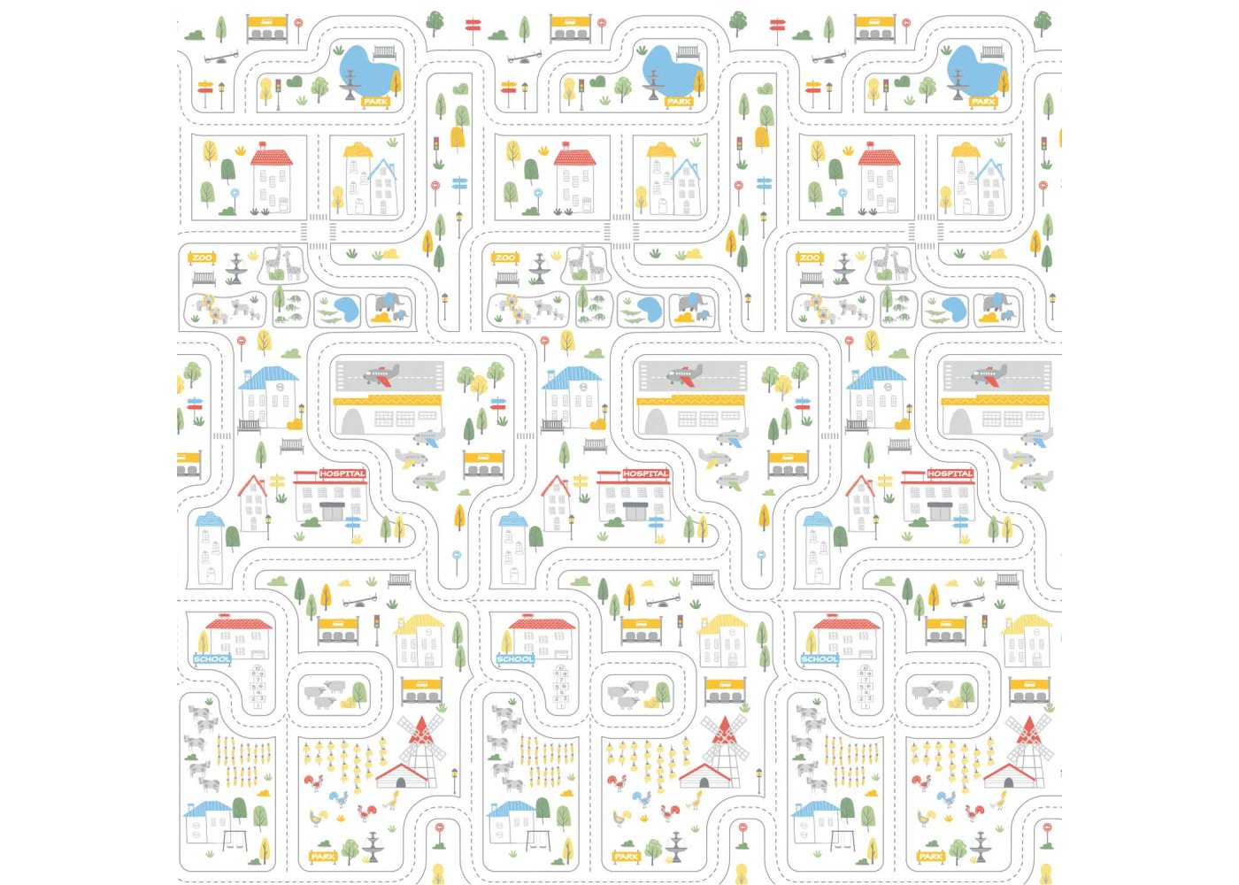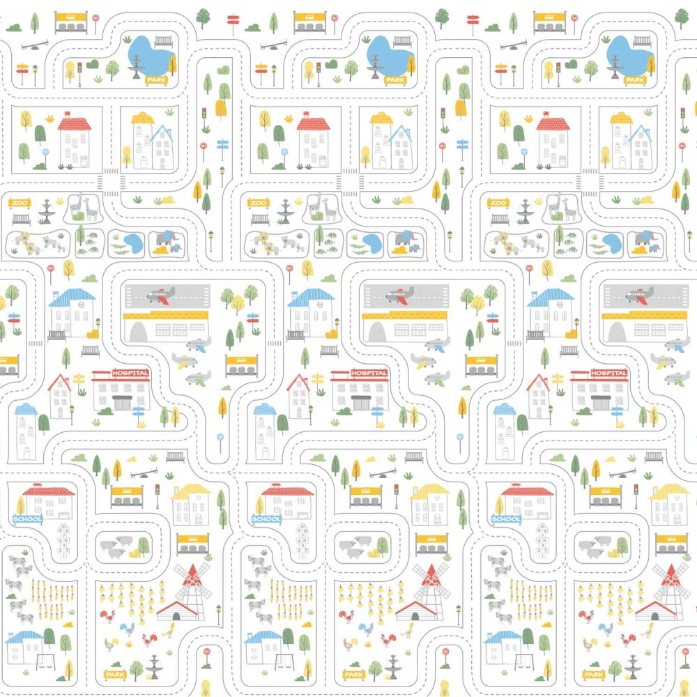 Lekmattan är vändbar med två olika illustrationer som stimulerar lek och kreativitet