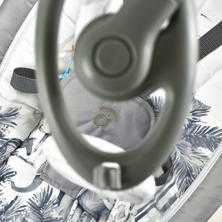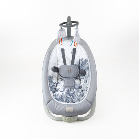 Stolens ryggstöd kan justeras i fyra olika lägen, är utrustad med en avtagbar leksakshängare för stimulering av barnets motorik.