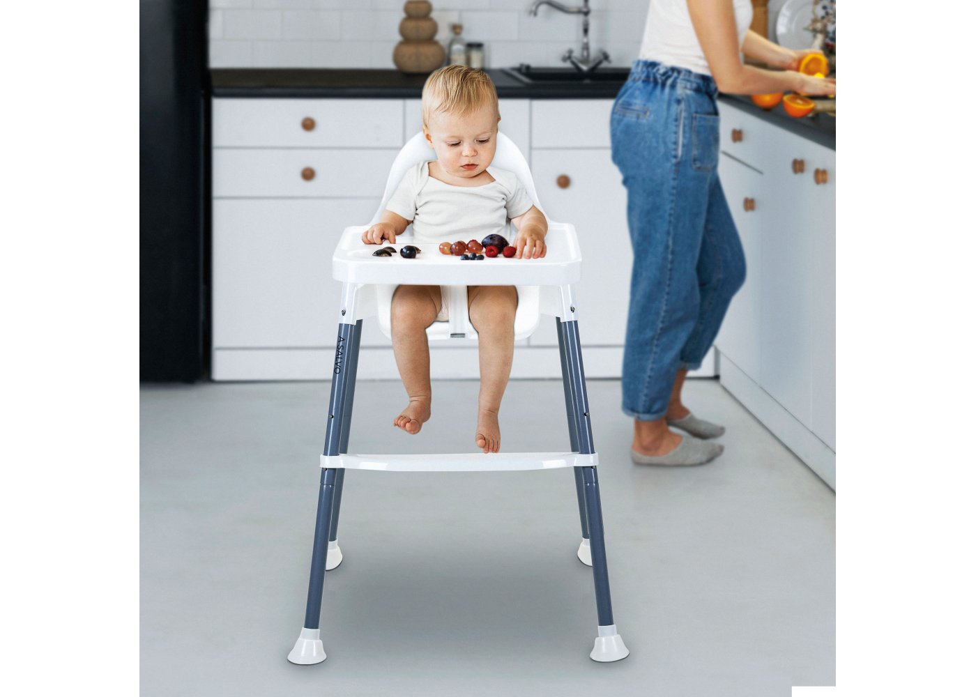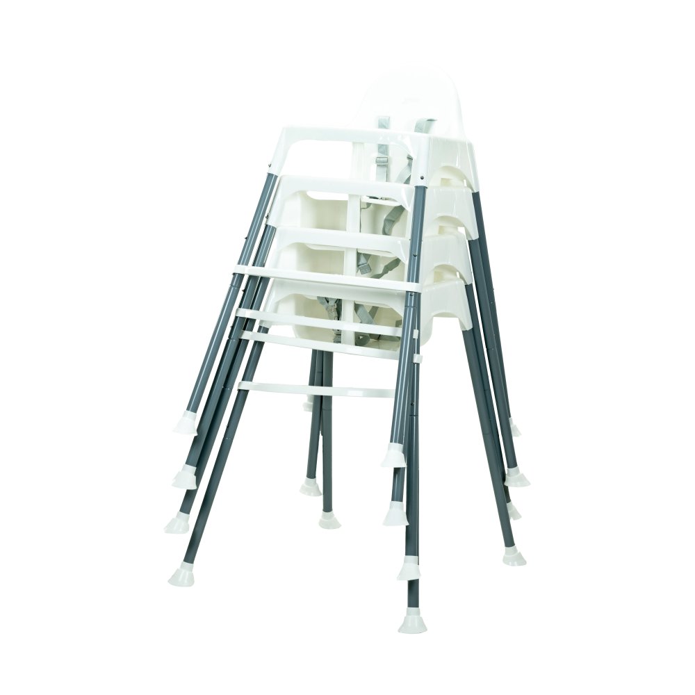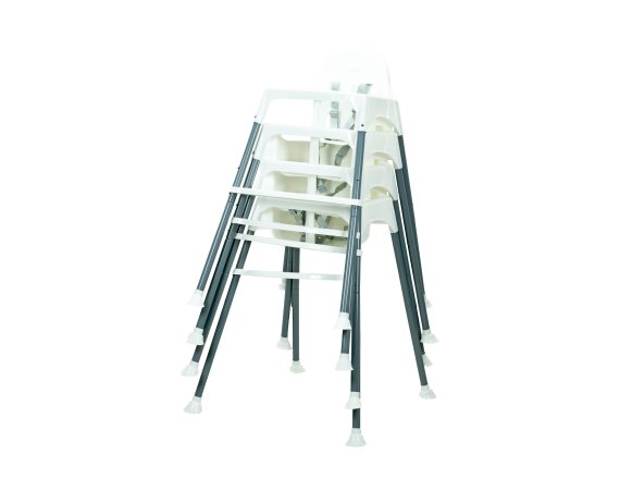 Den är lätt att rengöra med en trasa och brickan kan diskas i diskmaskin. Den avtagbara brickan gör det enkelt att placera barnet i stolen och den kan staplas för att spara utrymme.
