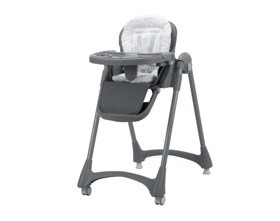 För ökad komfort har stolen ett ryggstöd som kan justeras i 3 lägen, ett justerbart fotstöd och en mjuk insats. Den dubbla brickan, som kan justeras i 3 lägen och tas bort, gör måltiderna enklare, och den tvättbara dynan samt den diskmaskinsvänliga brickan säkerställer enkel rengöring.