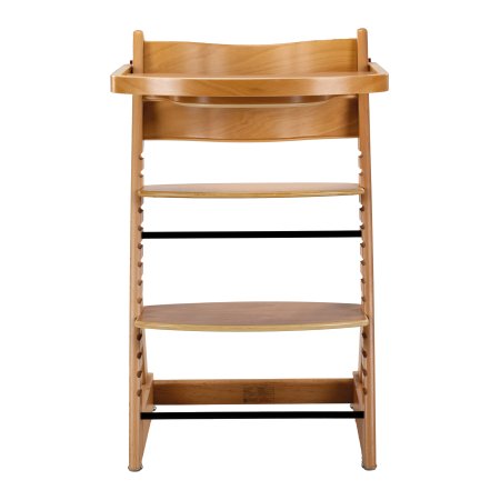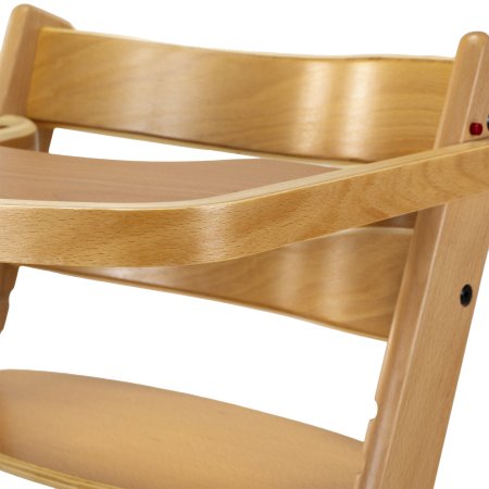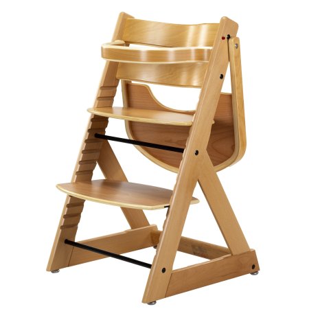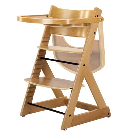 Stolen är utrustad med en 3-punktssele som garanterar hög säkerhet, medan det justerbara fotstödet och det ergonomiska ryggstödet ger optimal komfort. Den breda, avtagbara brickan underlättar måltider och städning, och en skyddsstång ger extra säkerhet för äldre barn.