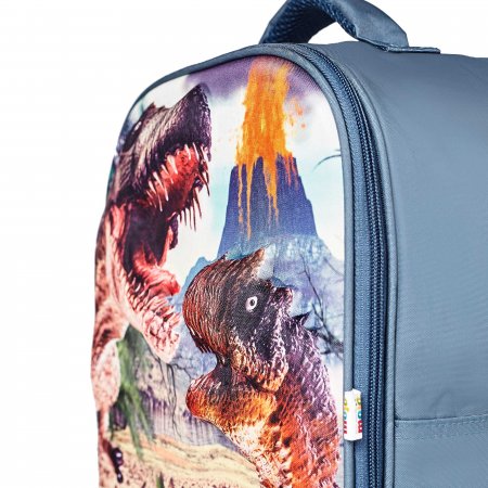 PlayScape är en ryggsäck med ett fint motiv av farliga dinosaurier på framsidan. Ryggsäcken har justerbara remmar och ett stort fack med dragkedja, där det finns plats för en tröja och lunchpaket.. Det andra facket med blixtlås kan vikas ut så att det blir en lekmatta med en dramatisk bakgrundsscen - så att barnets dinosaurier kan gå på spännande äventyr så snart lekmattan viks ut. Det är fantastisk underhållning och en underbar ryggsäck att ta med på tur där tiden ibland kan kännas lite lång och tråkig. Det blir inte tråkigt när ryggsäcken är med dig! När barnet har lekt kan djuren snabbt stoppas i ryggsäcken igen.