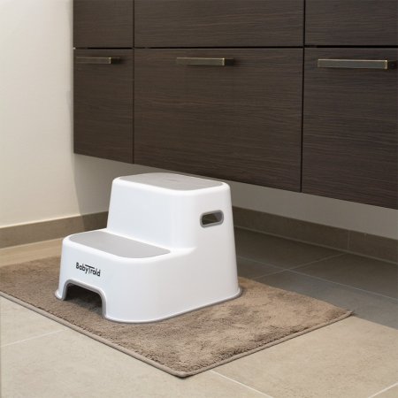 Här får du en praktisk tvåstegspall som gör det enkelt för ditt barn att delta i köksaktiviteter eller nå handfatet vid tandborstningen. Pallen kan också användas som sittplats när skorna ska tas på eller av.
