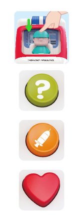 Den har tre knappar i olika färger för att styra ljus- och ljud effekter. Det finns varningssignaler, melodier och ljudet av hjärtslag. Ambulansen kan köra både med och utan utryckning/musik!