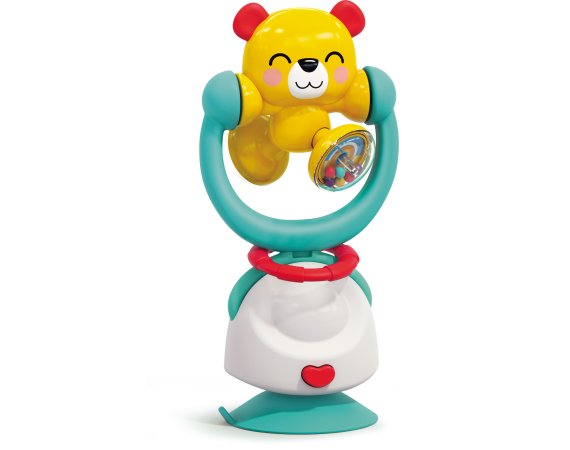 Här får du en härlig skallra med en björn som kan rotera 360 grader. Skallran har små bollar i fötterna som ger roliga stimulerande ljud, öron och en tuggbit.