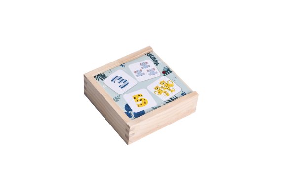 Kinder and Kids Trälåda med djur och antal träbitar.
