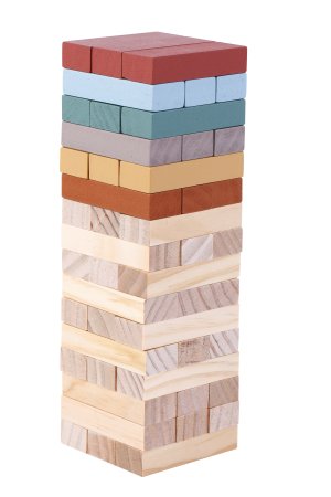 Du måste först bygga tornet. Dra sedan ut träpålarna en i taget utan att de välter. Byggklossarna som dras ut ur tornet måste placeras ovanpå igen.