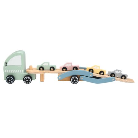 Lyxig biltransport i trä med 4 bilar i vackra färger från Kinder and Kids.