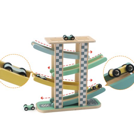 Festlig bilbana med fyra bilar i vackra färger från Kinder and Kids.