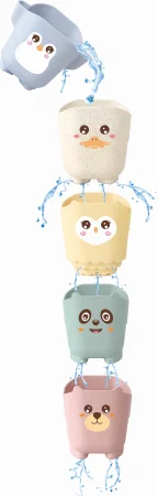 Att leka med muggarna stärker barnets motorik och ger dig möjlighet att lära dig begrepp som tom/full, tung/lätt och flyta/sjunka.