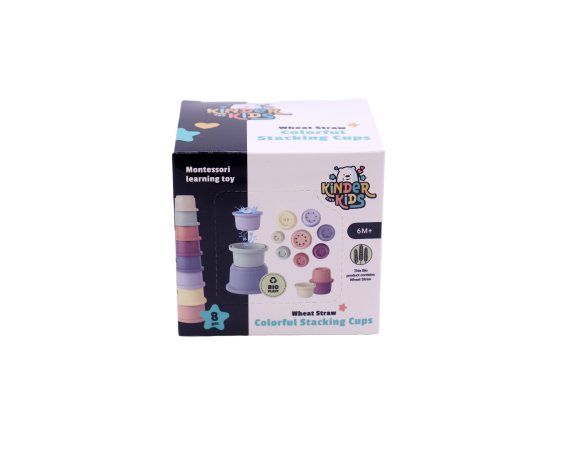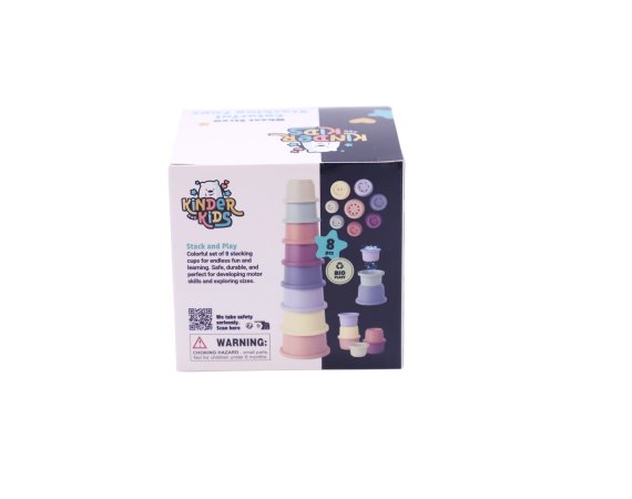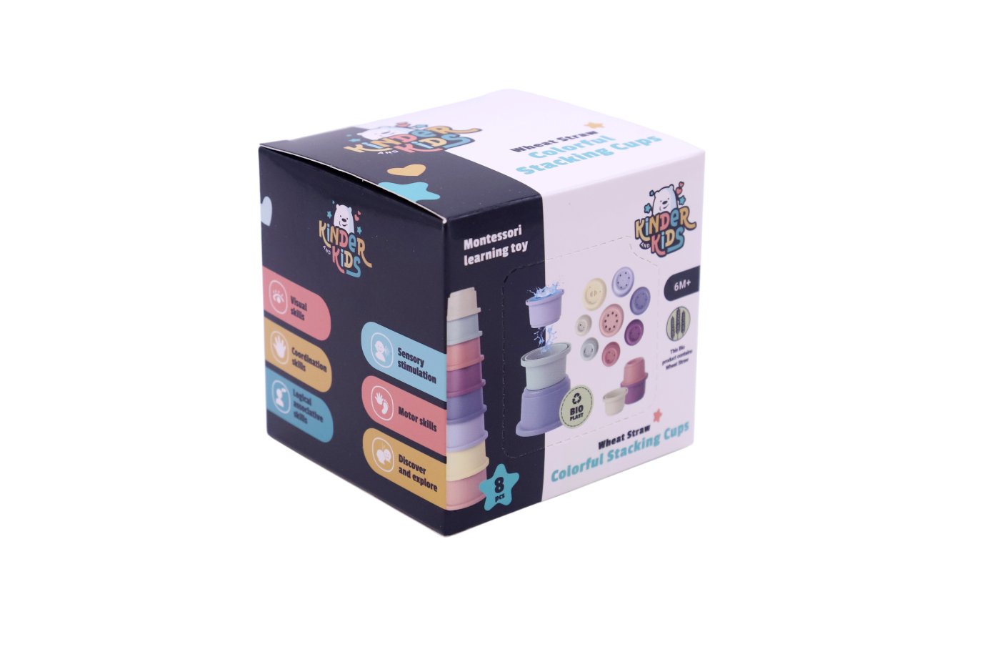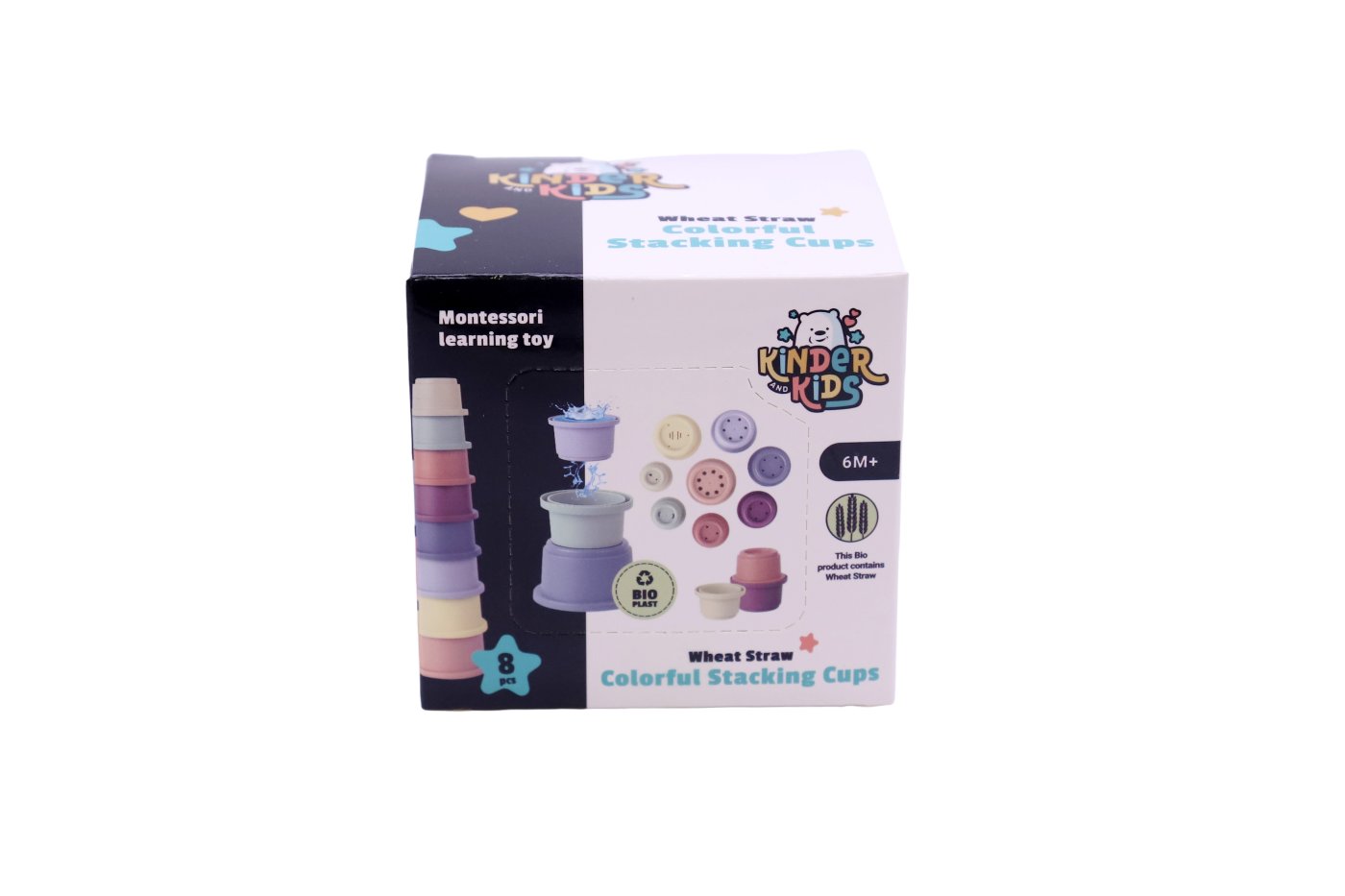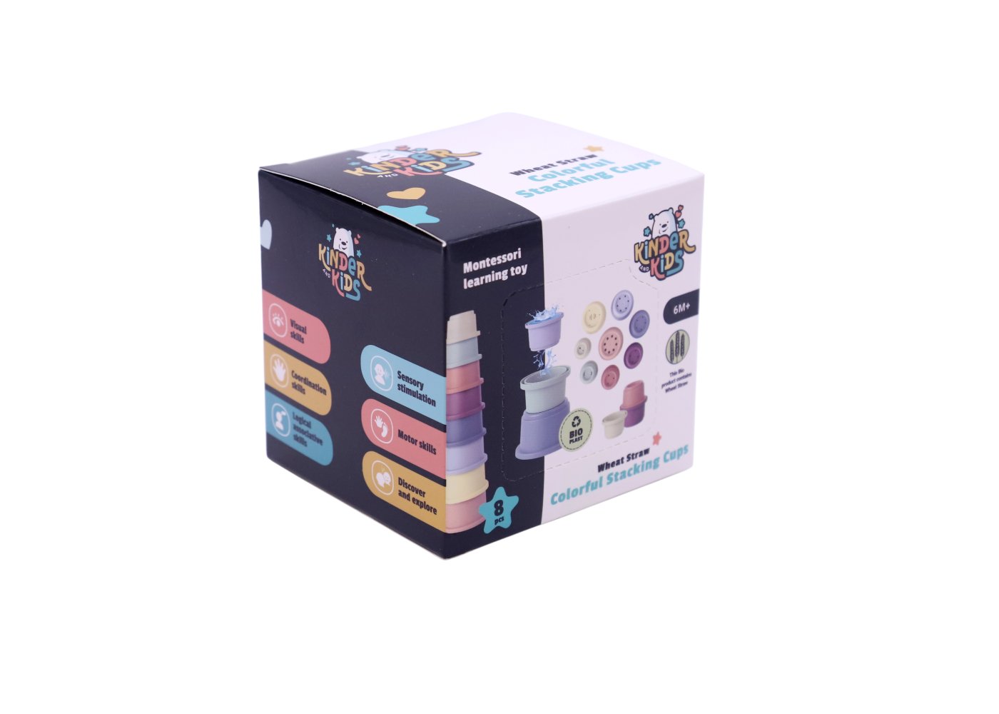 Åtta stapelbara koppar med siffror och hål för rolig vattenlek från Kinder och Kids.