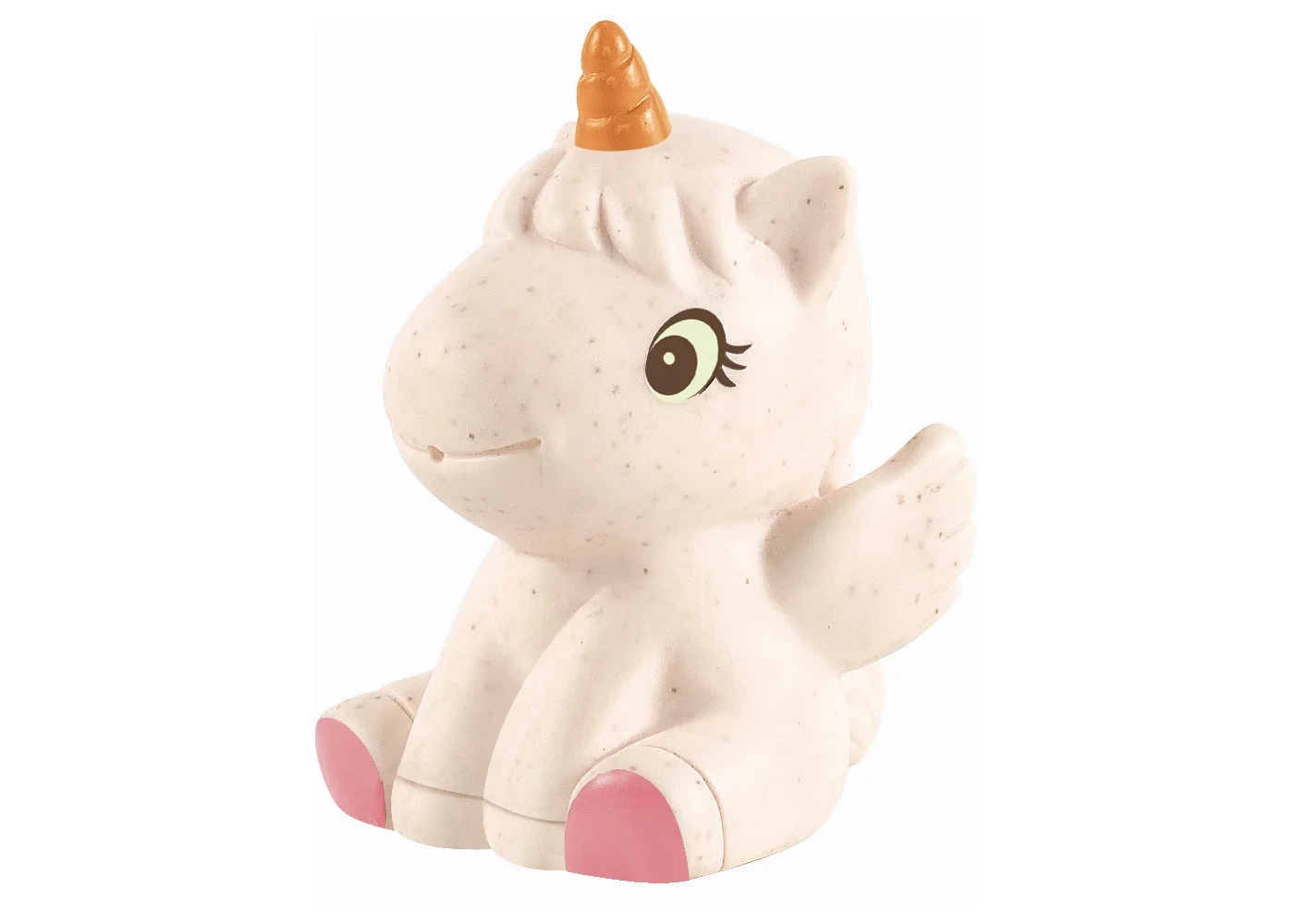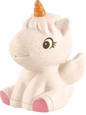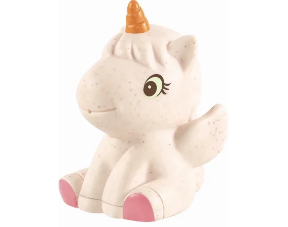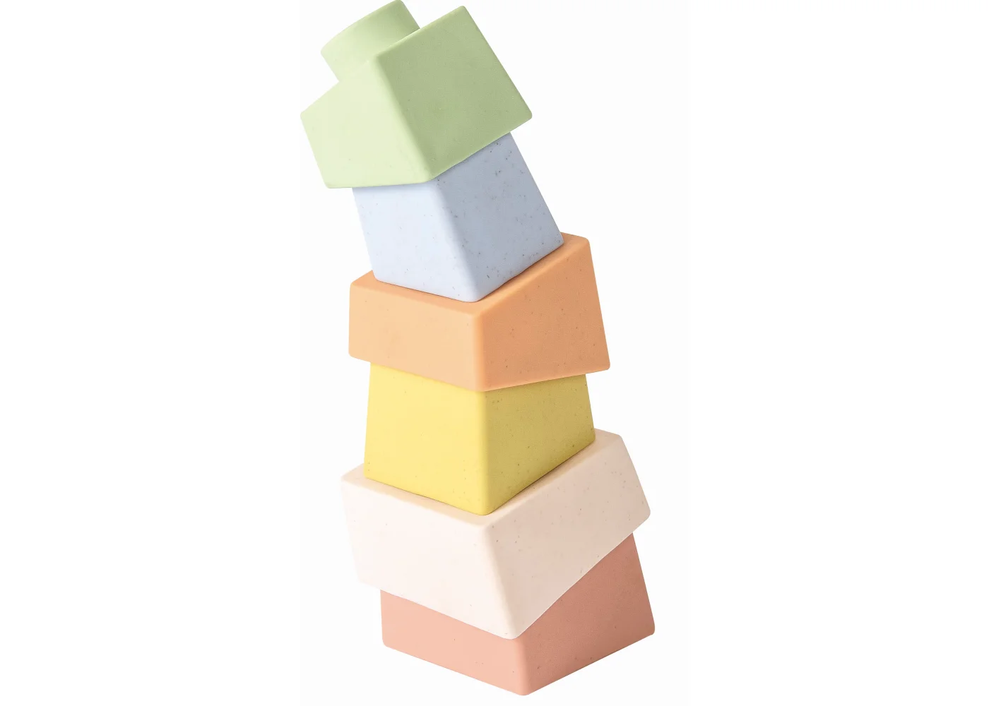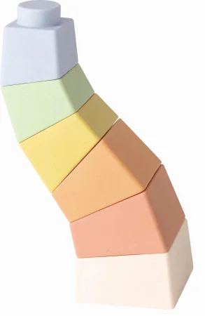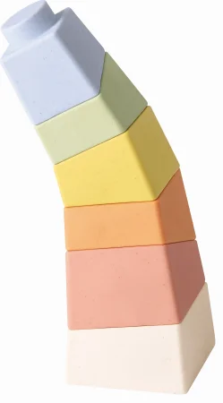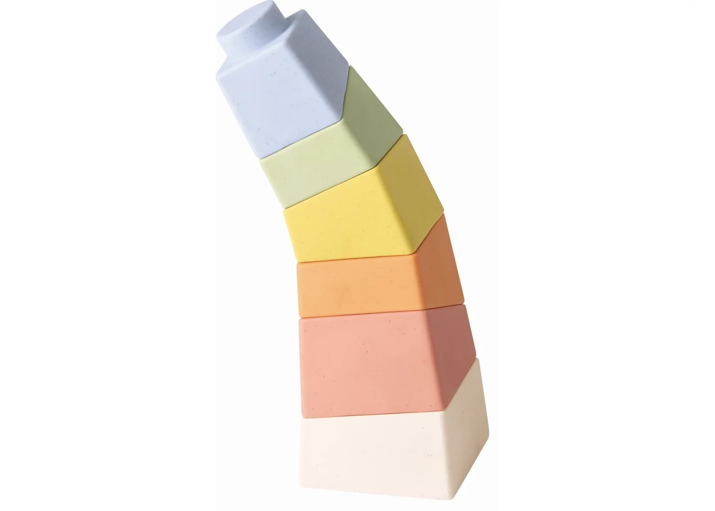Det vackra stapeltornet i läckra dämpade färger kommer med 6 BIOplast-klossar i olika storlekar och former som måste passa ihop och en söt enhörning att sätta på toppen av tornet.