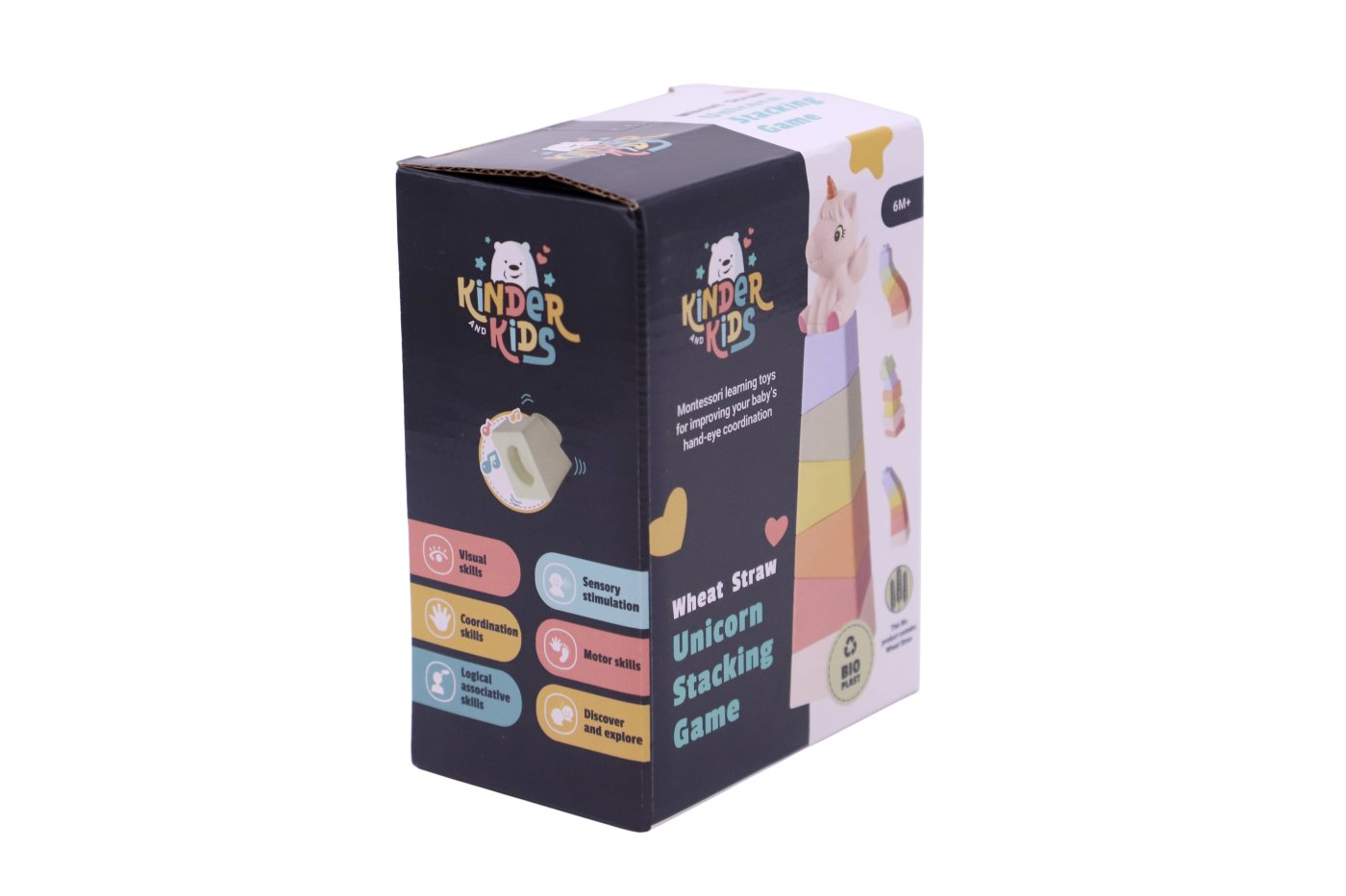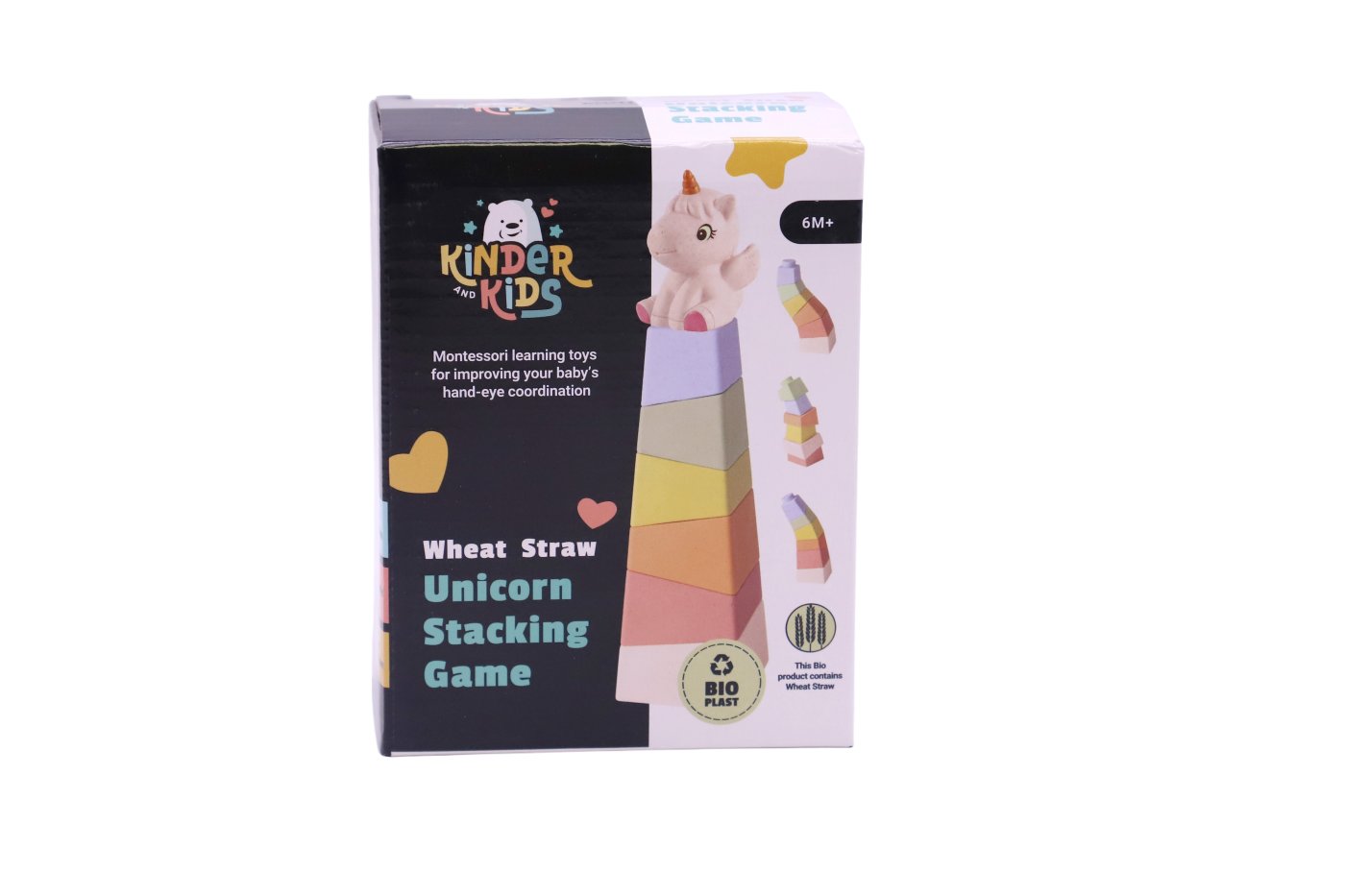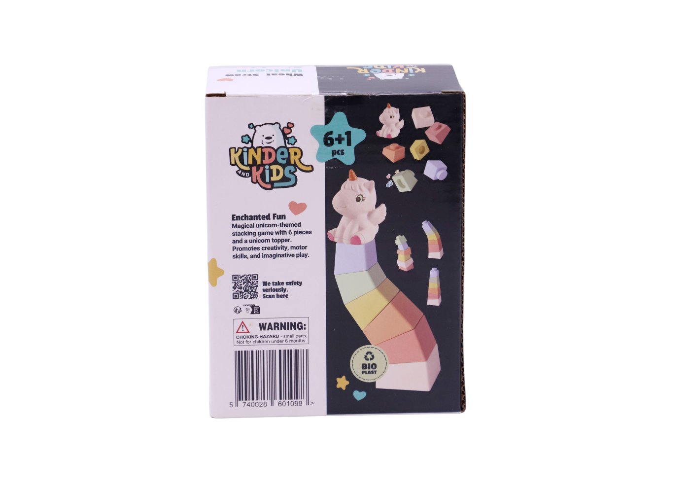 Underbart och annorlunda stapeltorn med en söt enhörning från Kinder and Kids (7 delar).