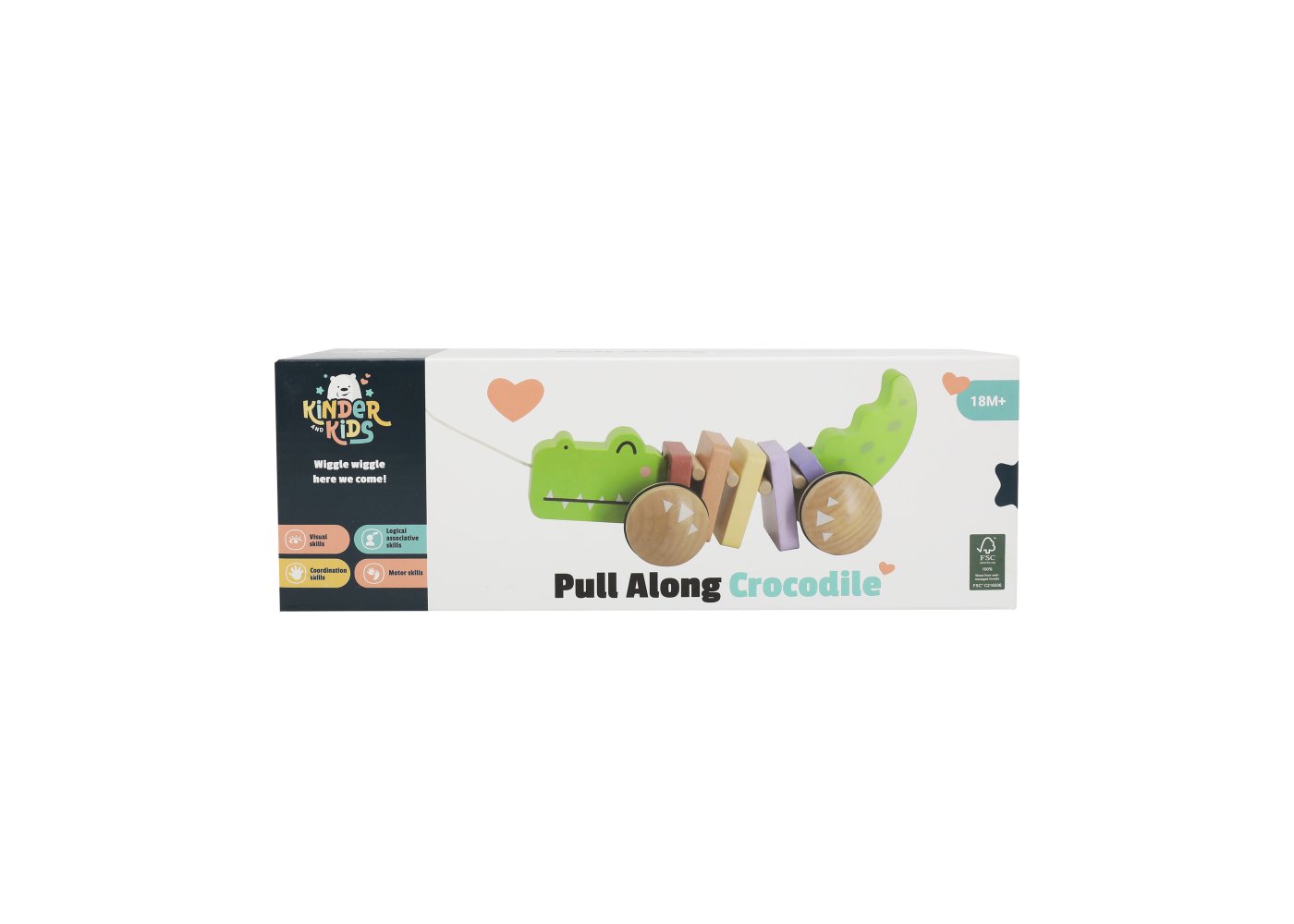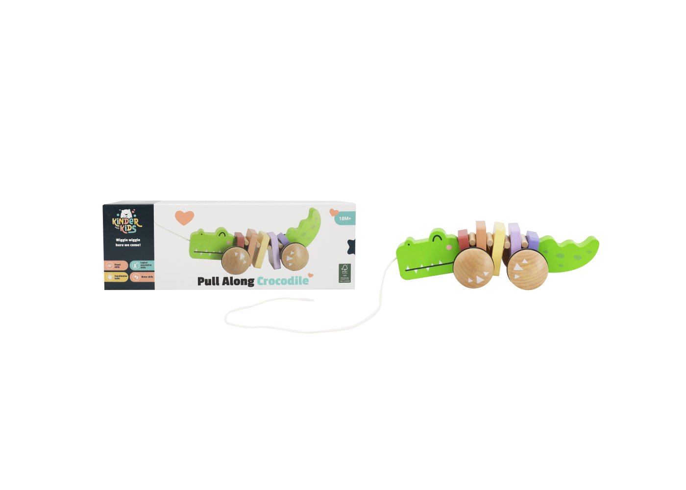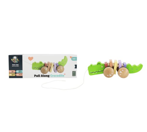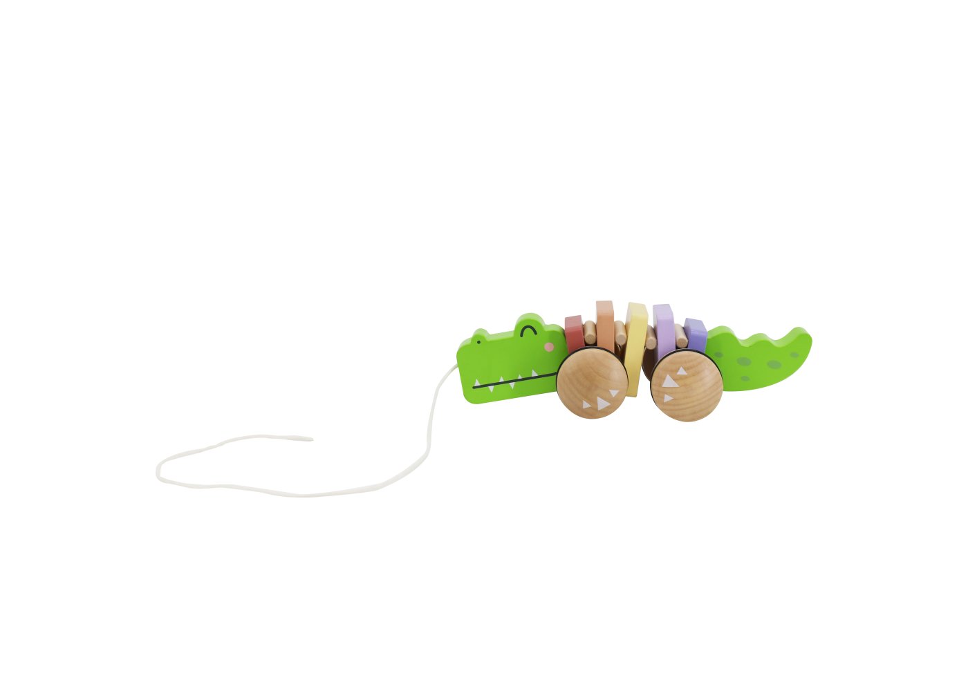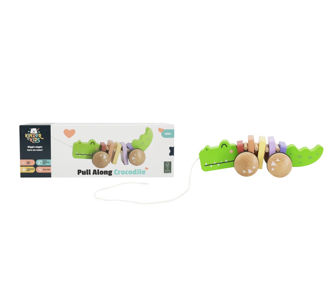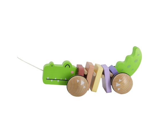 Den söta krokodilen följer barnet när det dras bort och får en rolig rörelse som gör leken extra underhållande. Dragdjur är en klassiker för de små, och den här färgglada krokodilen ger både glädje och utmaning till små ben när barnet går på upptäcktsfärd.