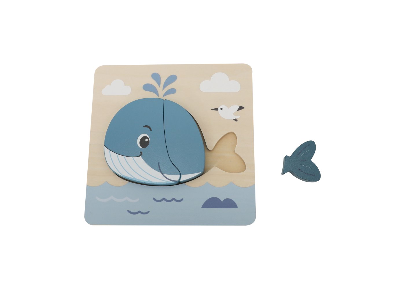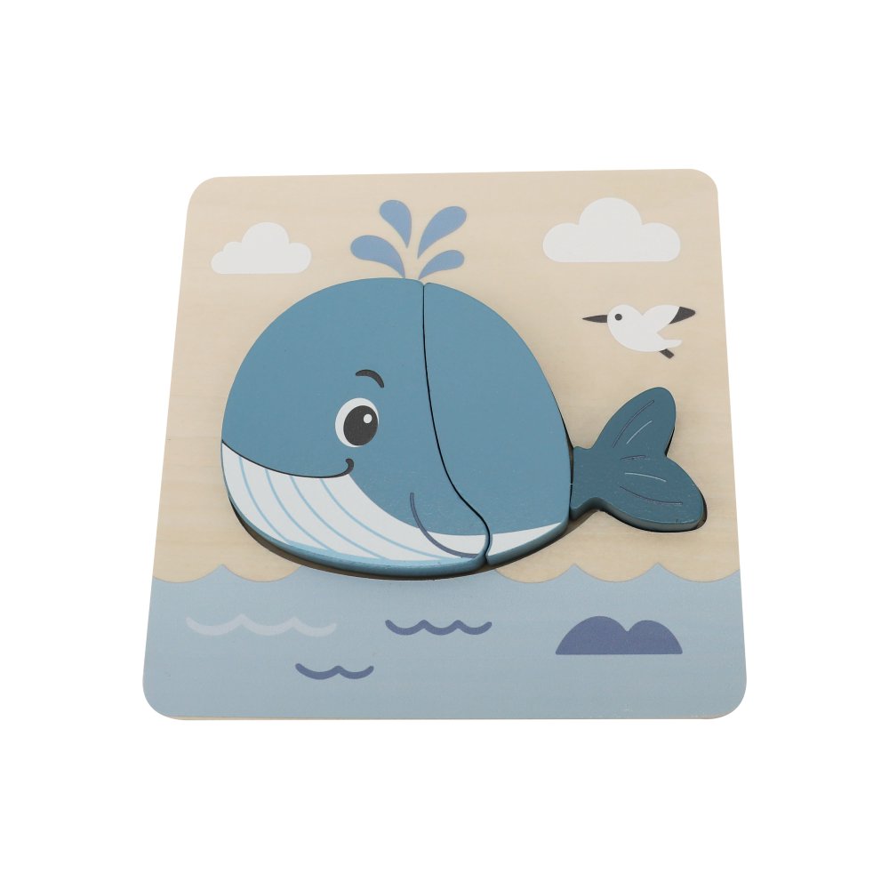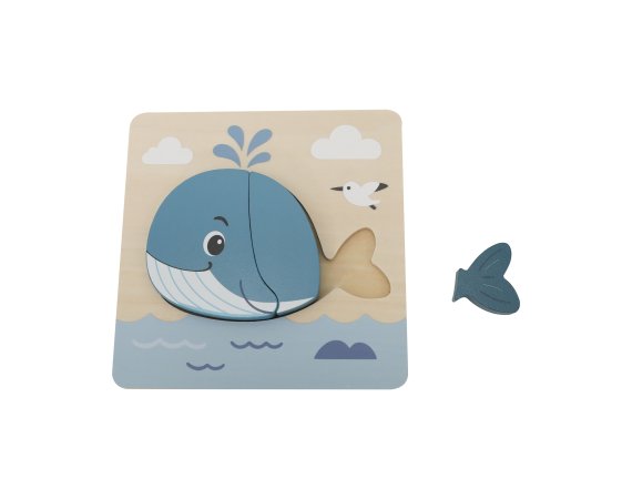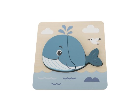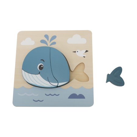 Ett sött litet pussel med en glad val som blåser ut vattenstrålar ur huvudet. Verken är stora och lätta att greppa, så att även de yngsta kan vara med och njuta av att sätta ihop motivet.