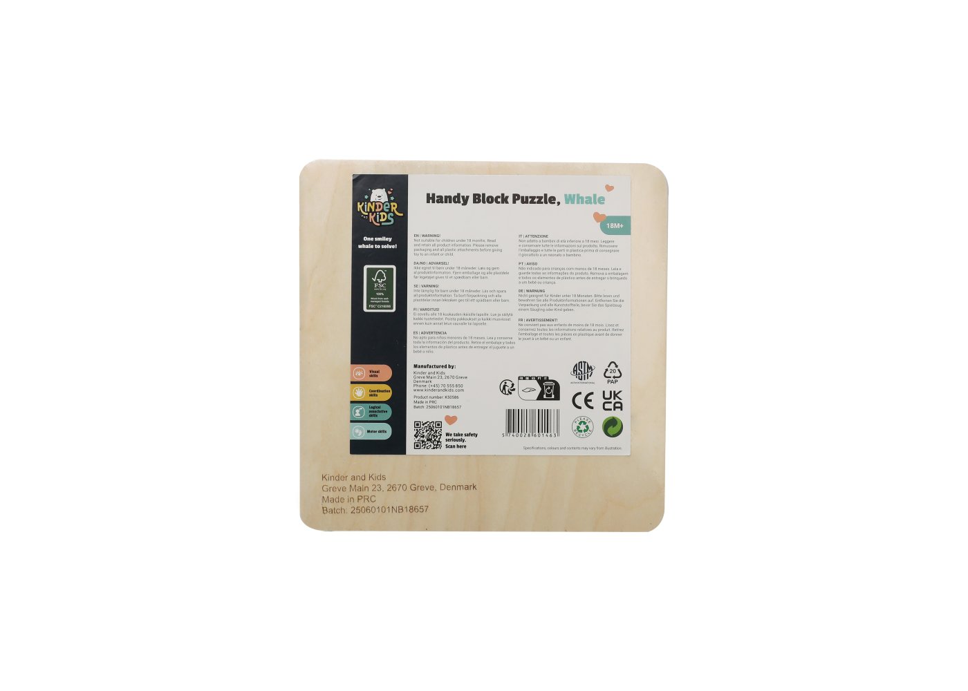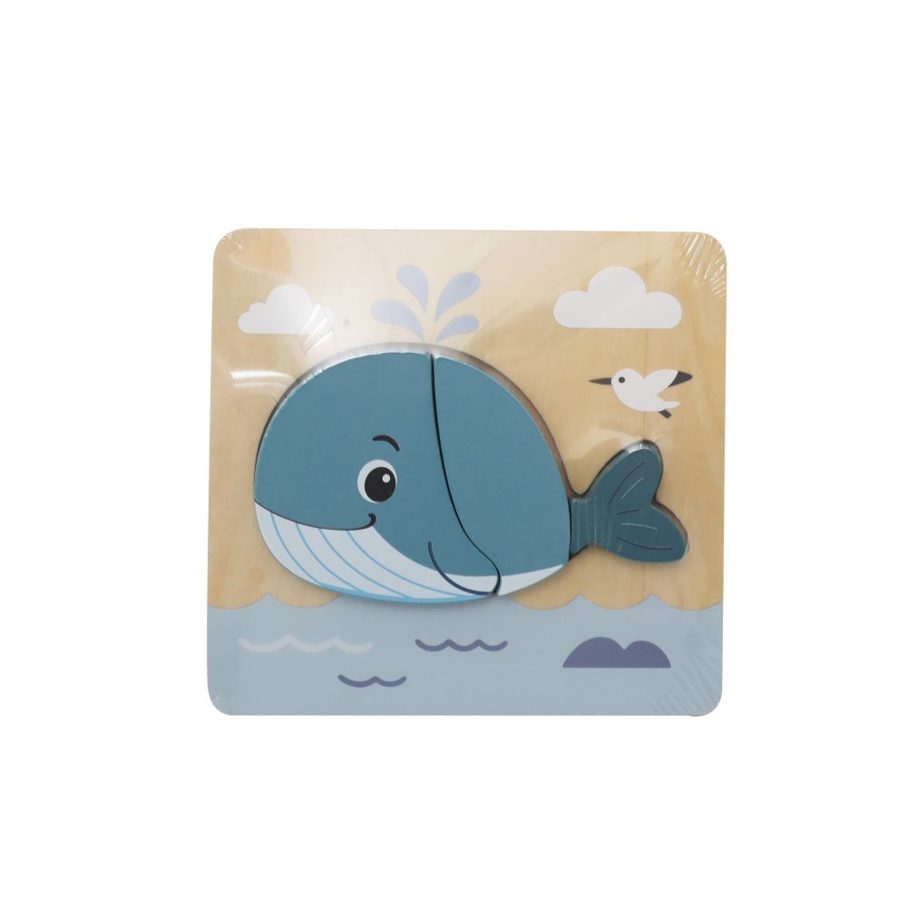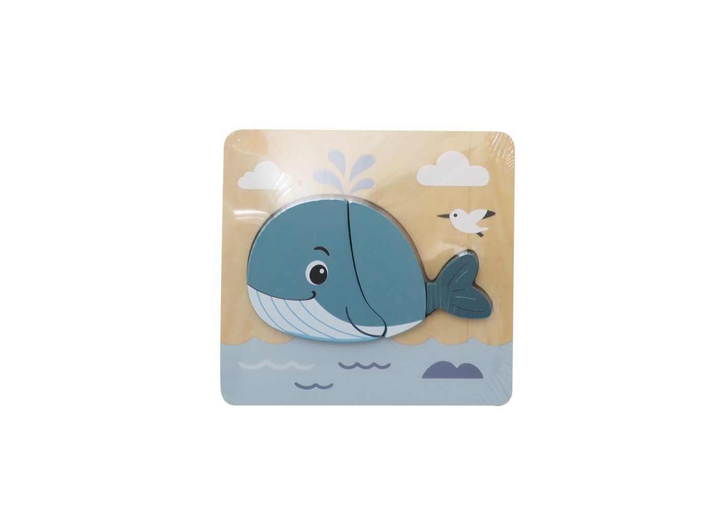 Ett sött litet pussel med en glad val som blåser ut vattenstrålar ur huvudet. Verken är stora och lätta att greppa, så att även de yngsta kan vara med och njuta av att sätta ihop motivet.