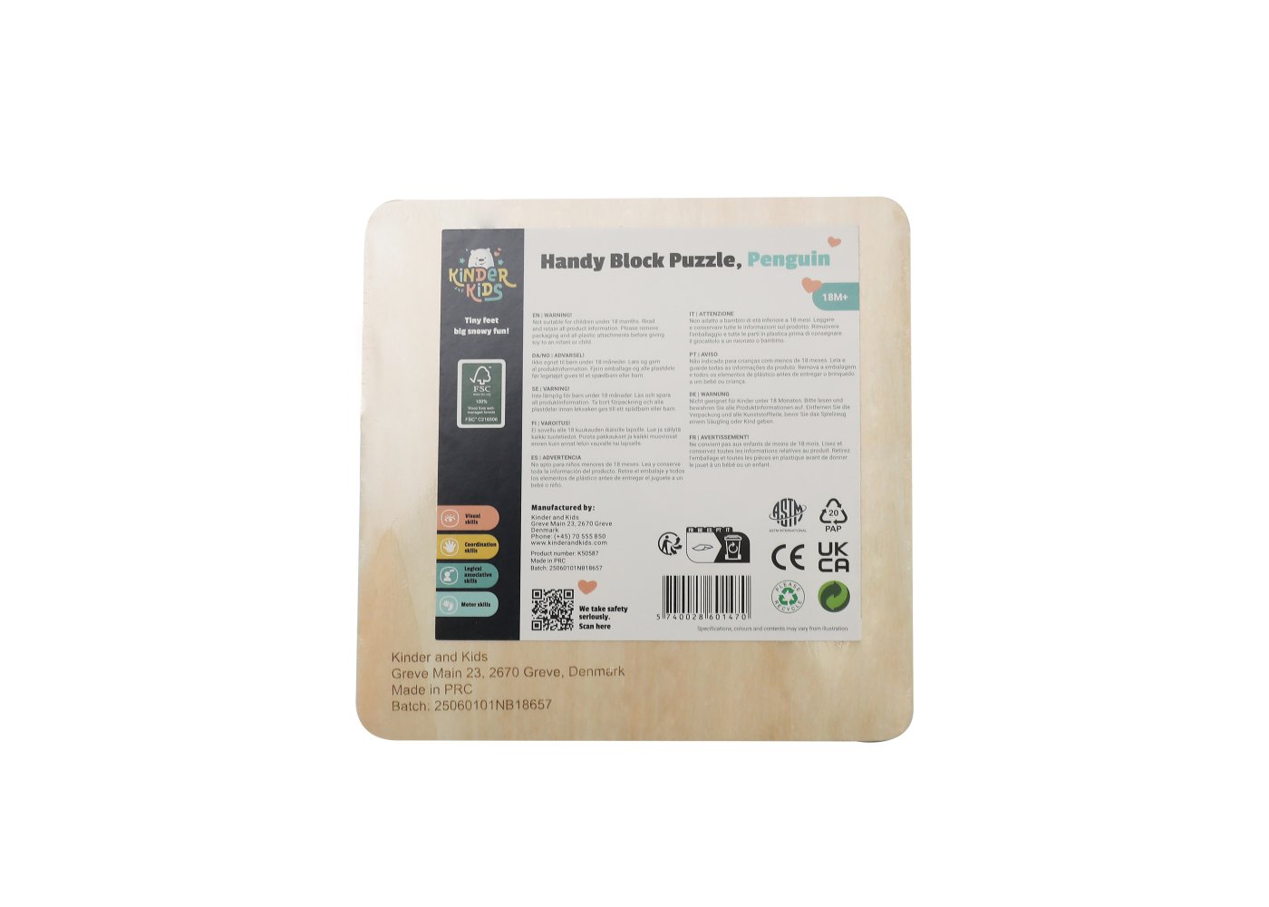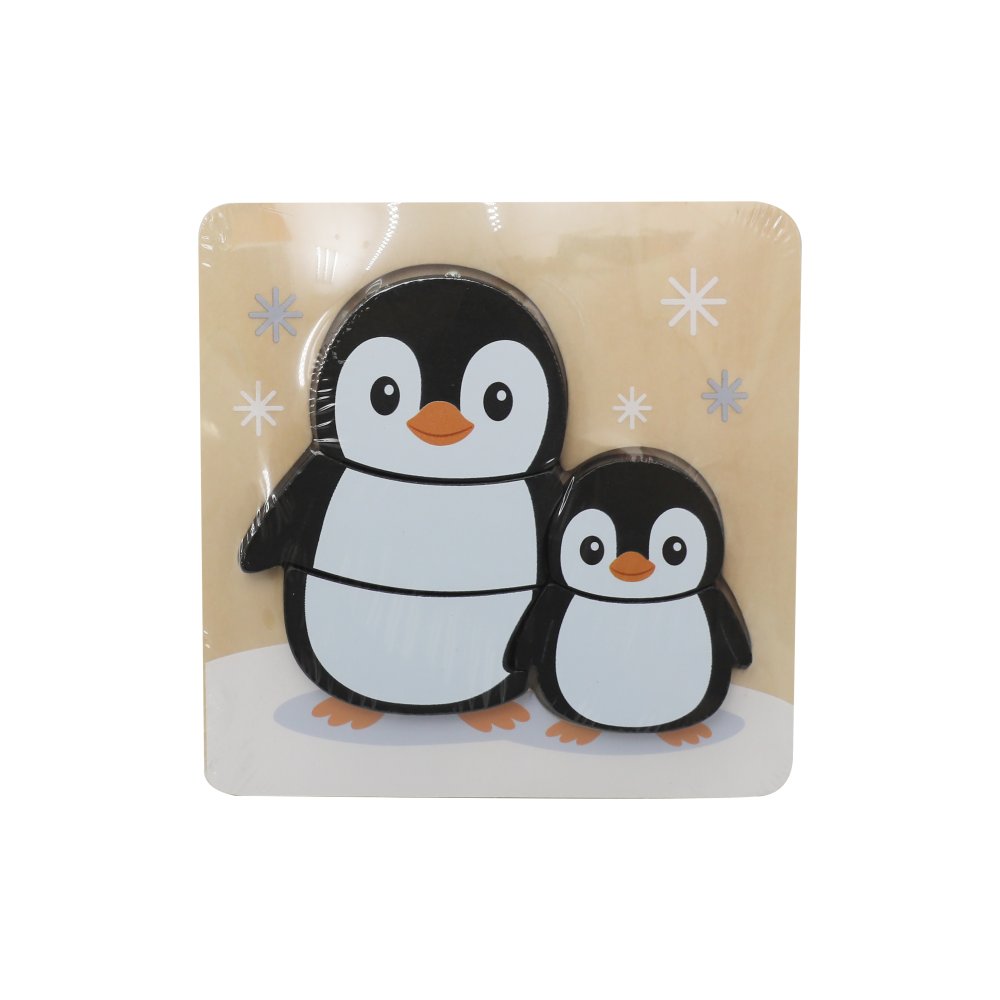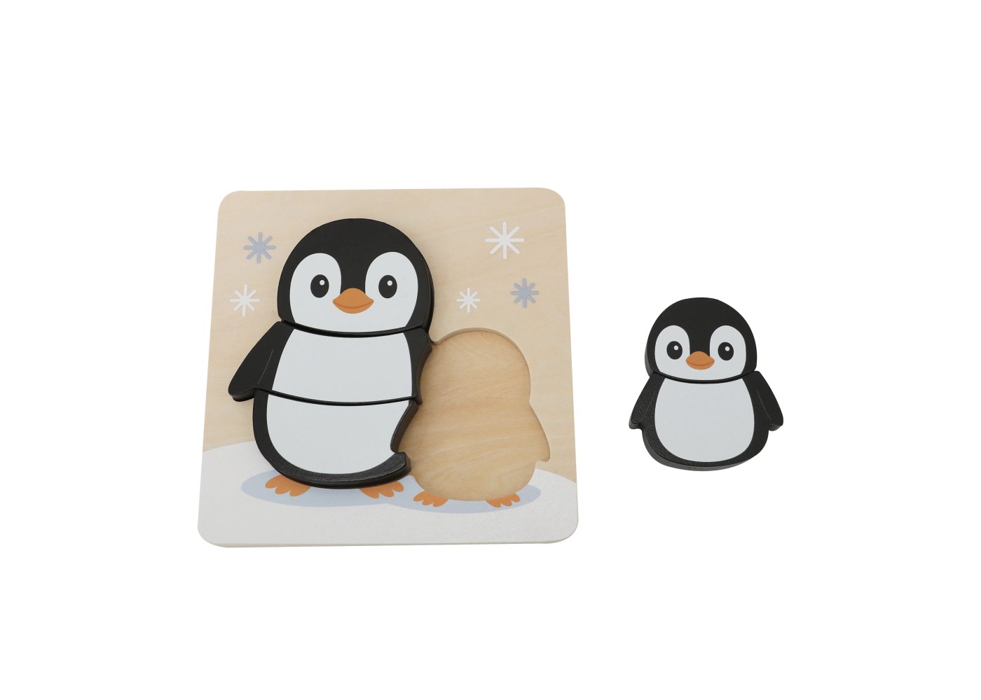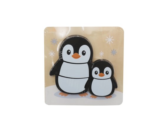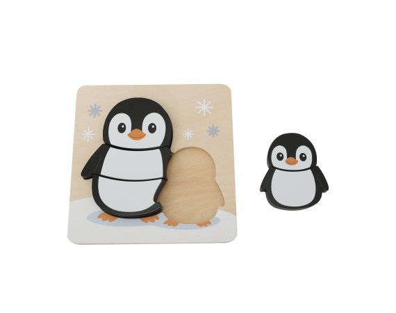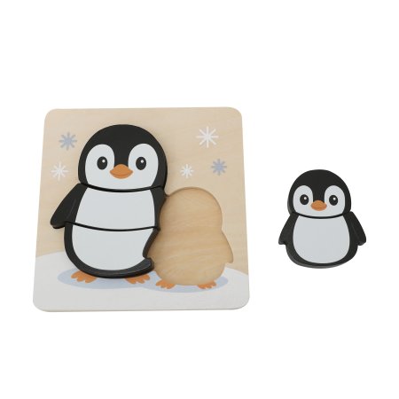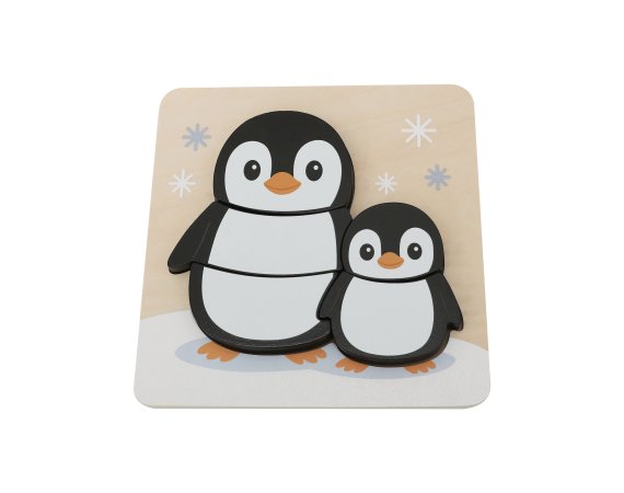 Ett mysigt pussel med två pingviner som ler sida vid sida. Bitarna är stora och lätta att hantera, så även de minsta kan hjälpa till att lägga pusslet.