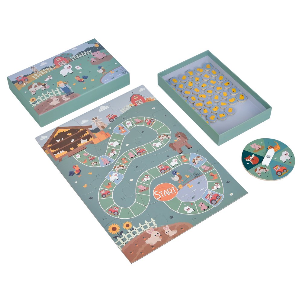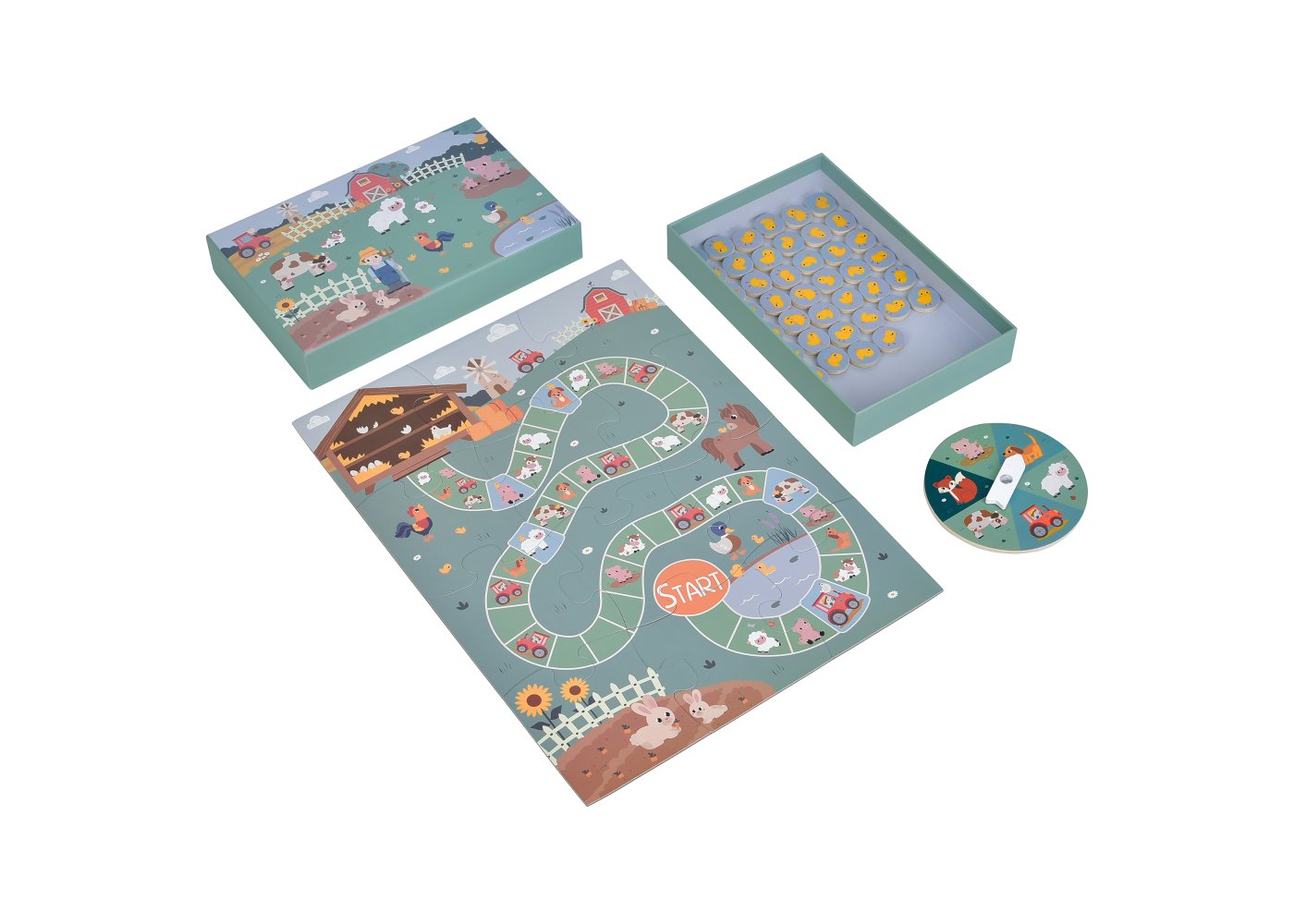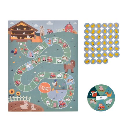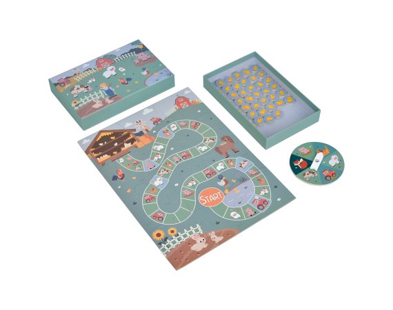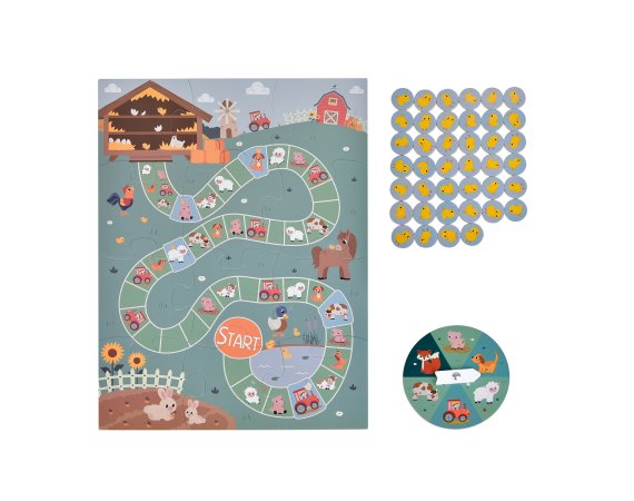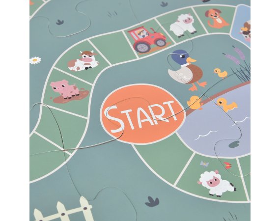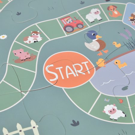 Ett mysigt brädspel där målet är att ta sig säkert genom nivån på gården. Istället för att kasta tärningarna vrider du på en pil och sedan flyttar du din pjäs till rutan som pilen visar.