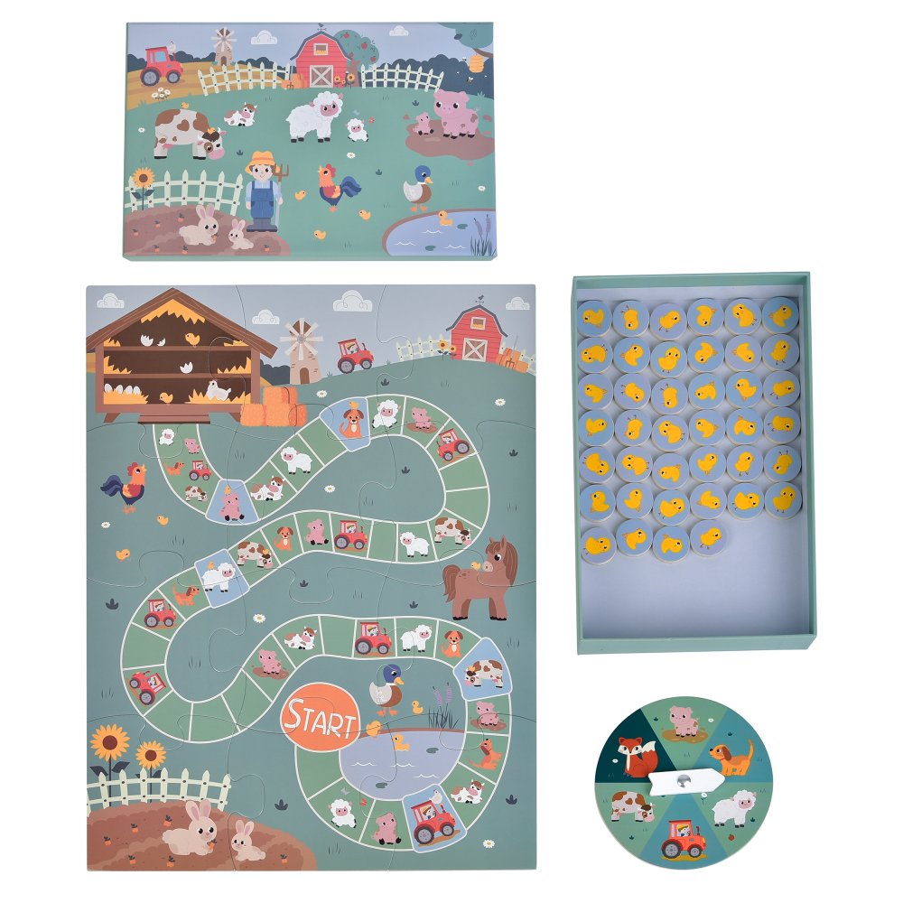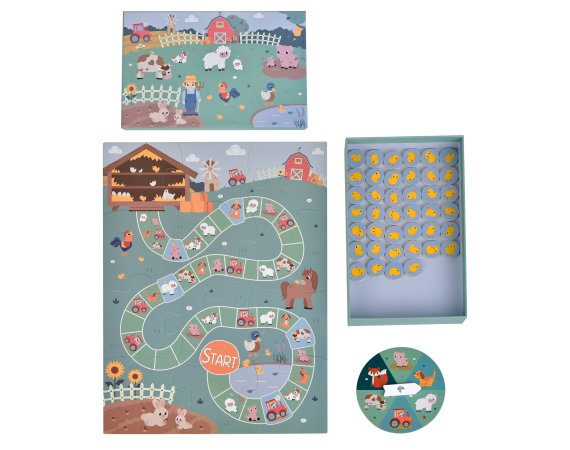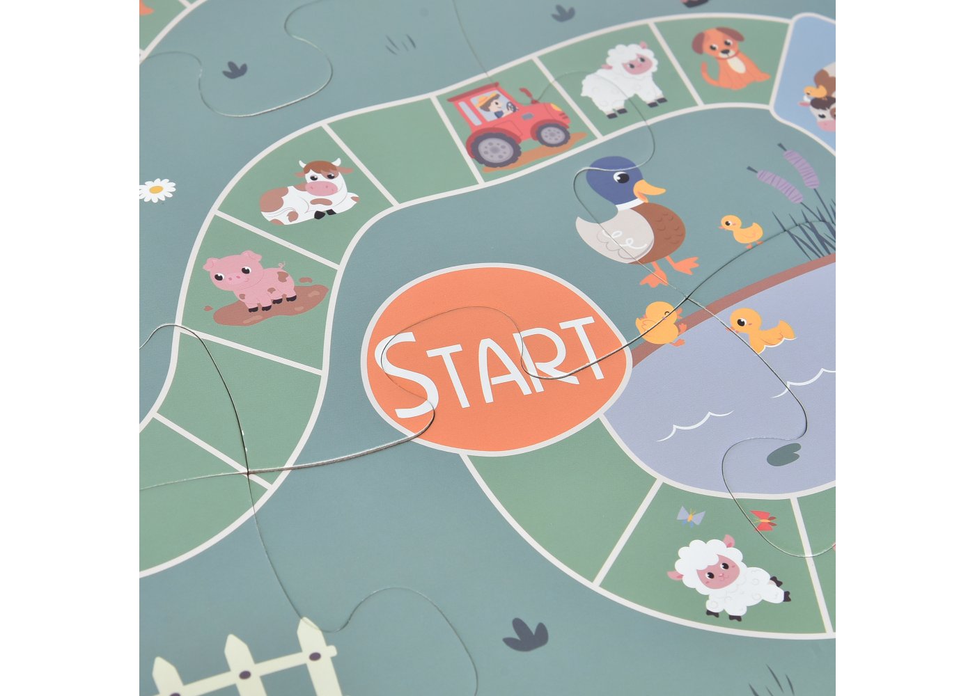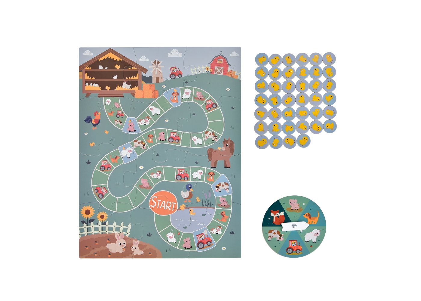 Ett mysigt brädspel där målet är att ta sig säkert genom nivån på gården. Istället för att kasta tärningarna vrider du på en pil och sedan flyttar du din pjäs till rutan som pilen visar.