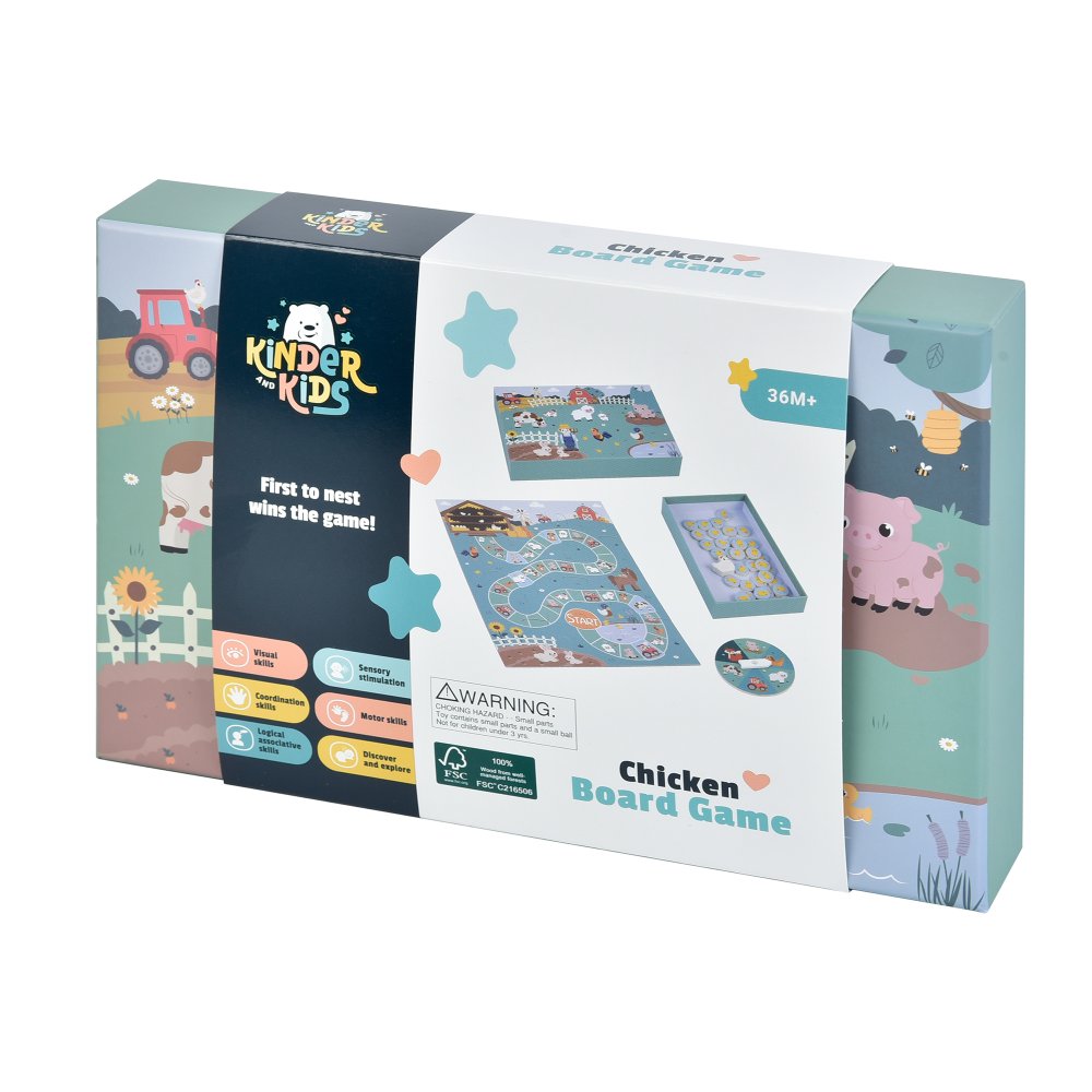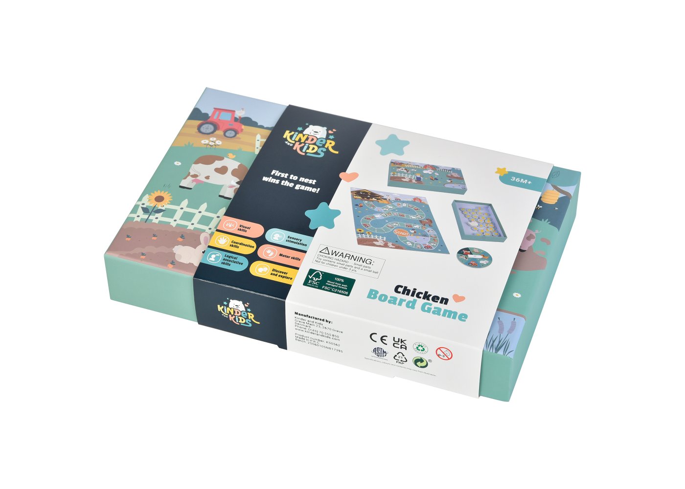 Detta gör spelet lätt för även de yngsta att gå med i, och barnen lär sig snabbt att vänta på sin tur, flytta sina pjäser och följa de enkla reglerna. Samtidigt ger de många rutorna på spelbrädet möjlighet till skoj och små överraskningar på vägen.