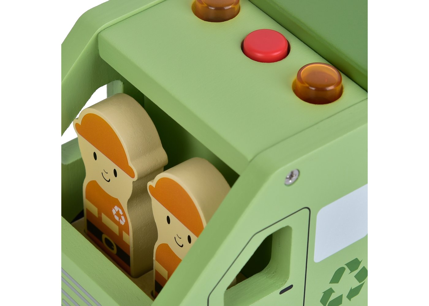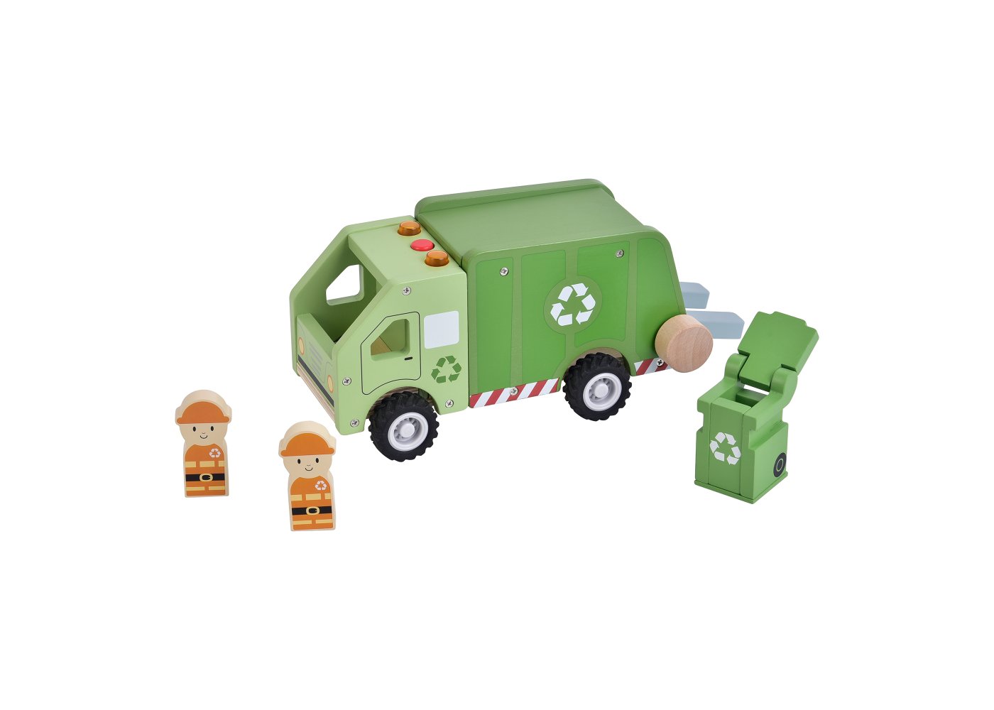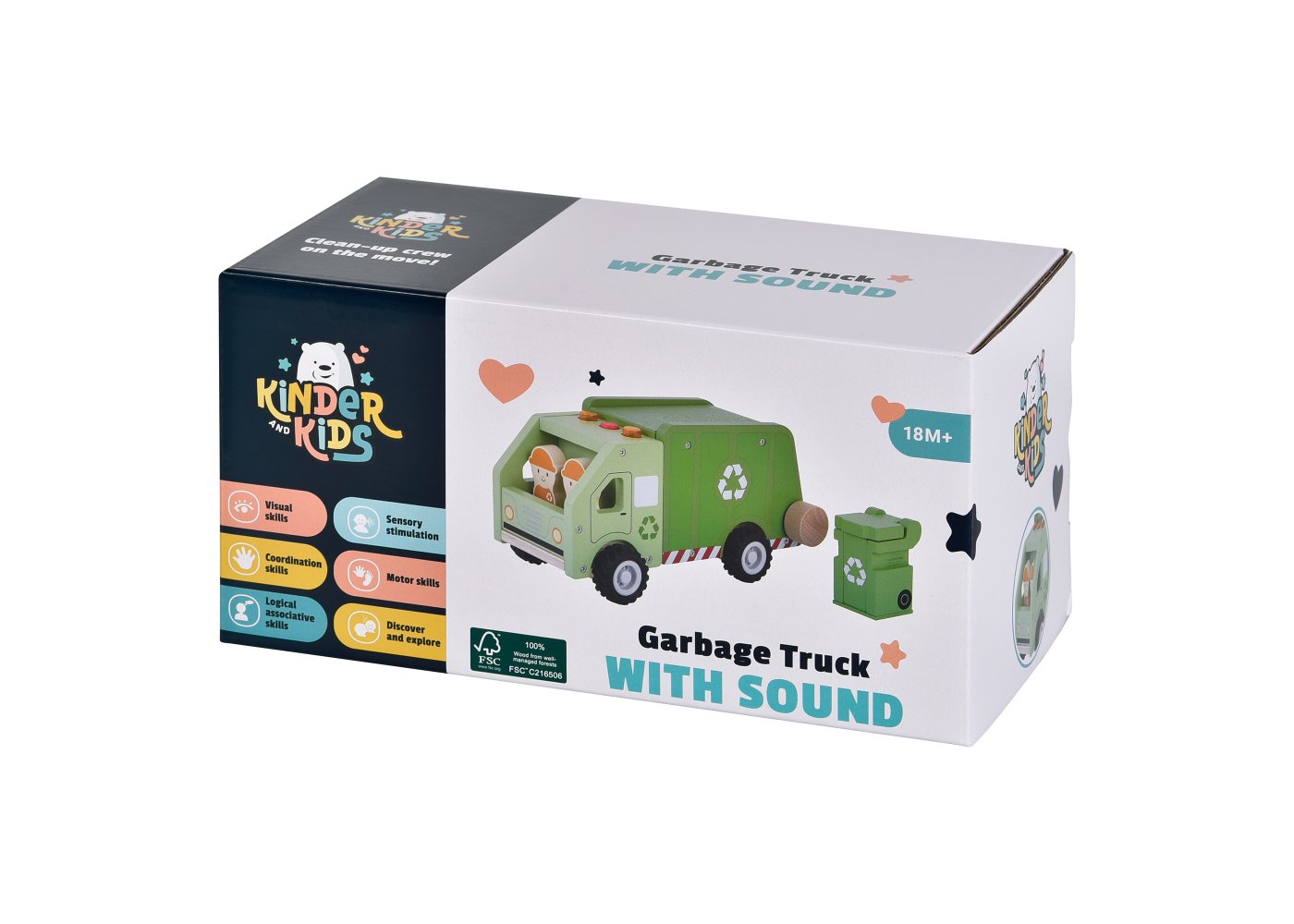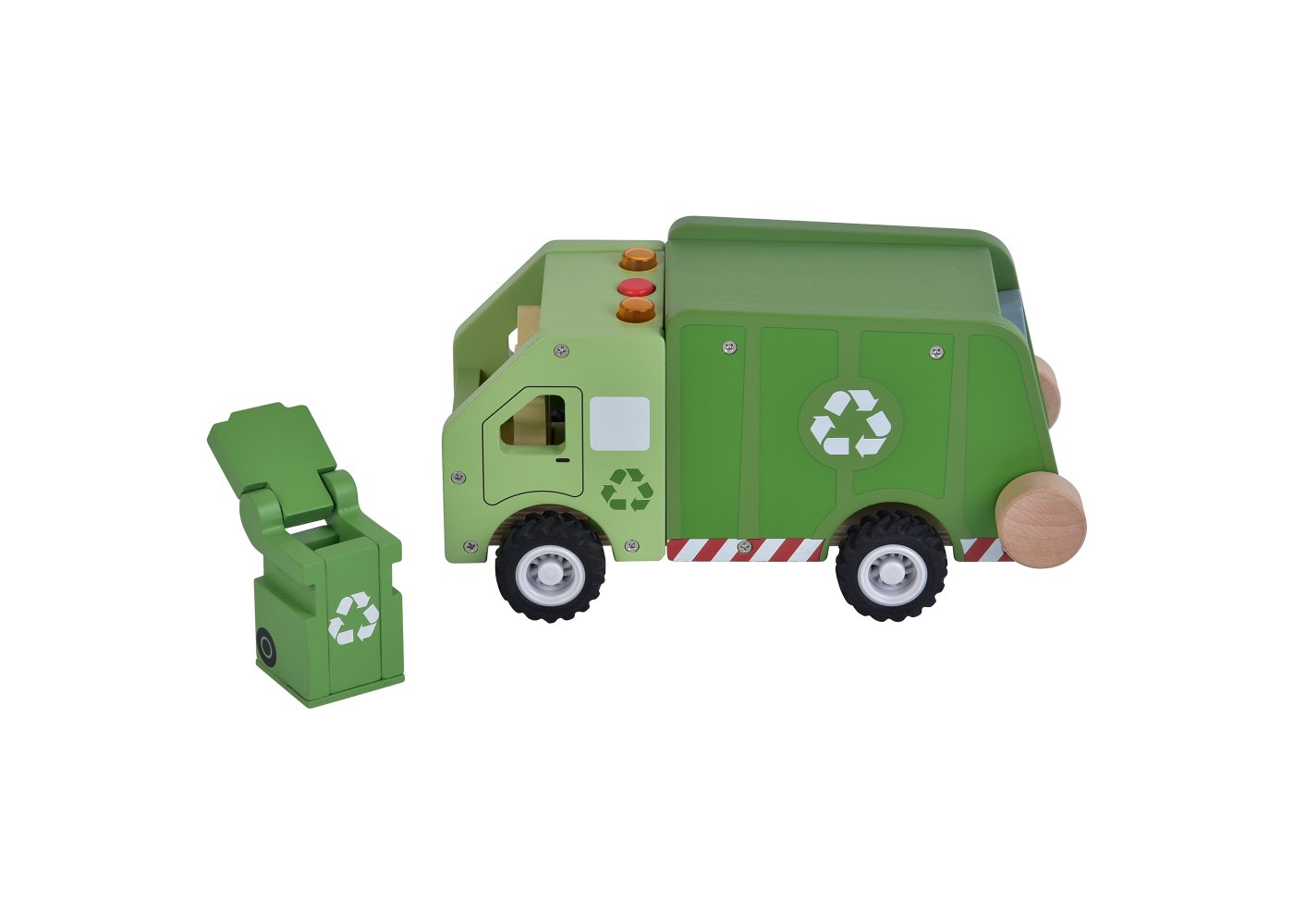 När sopbilen kör genom staden med ljud och container i baksätet blir leken snabbt igenkännbar och rolig. Barnen kan leka sophämtning, fylla behållaren och tömma den i bilen – precis som de ser det i verkligheten.