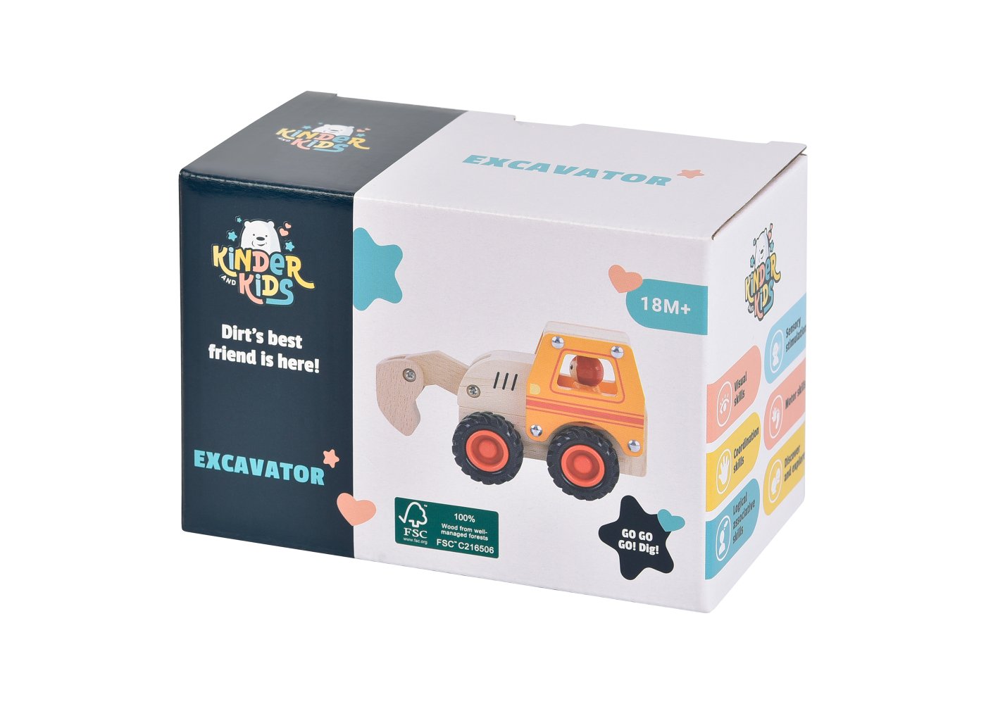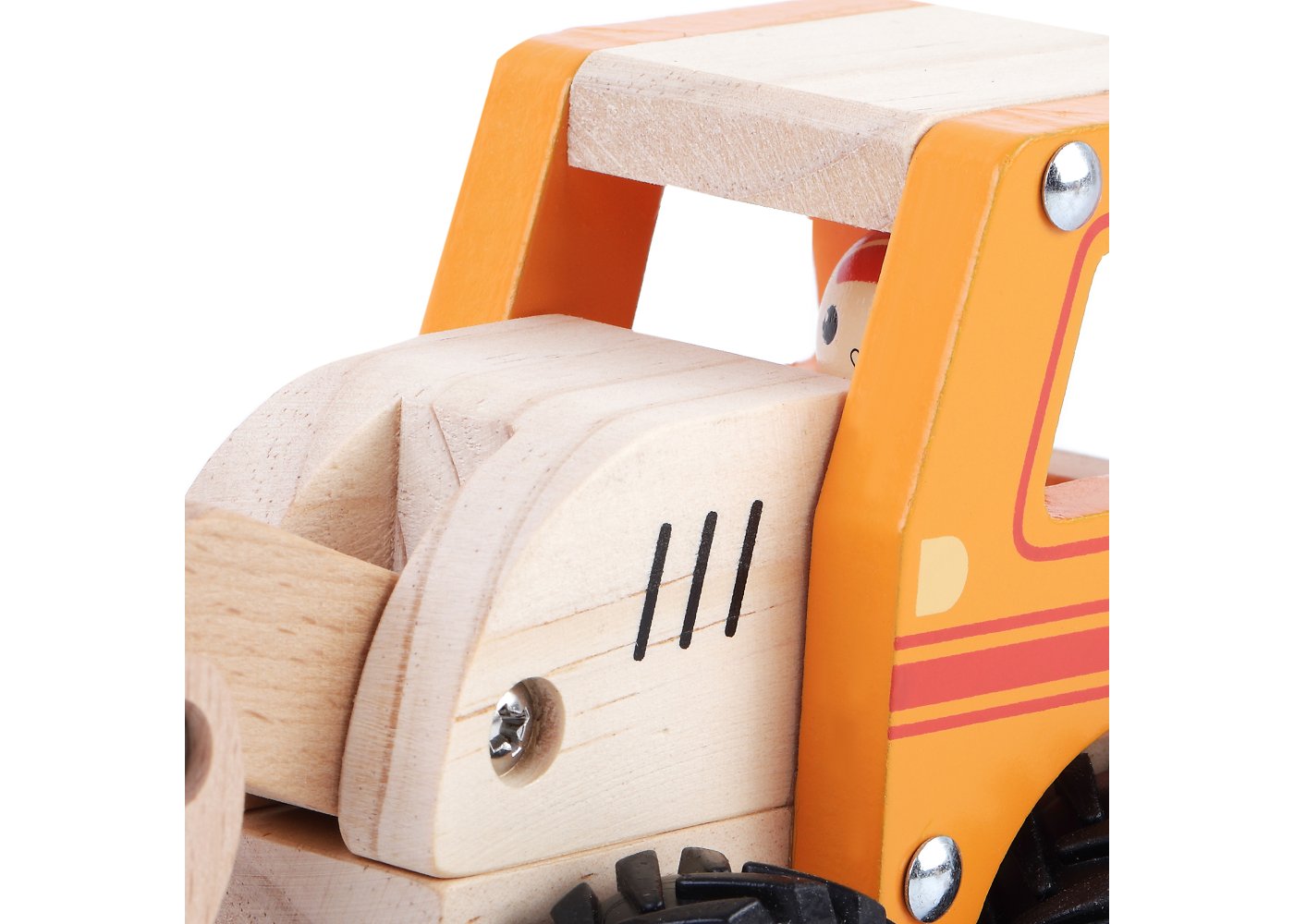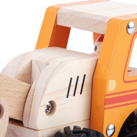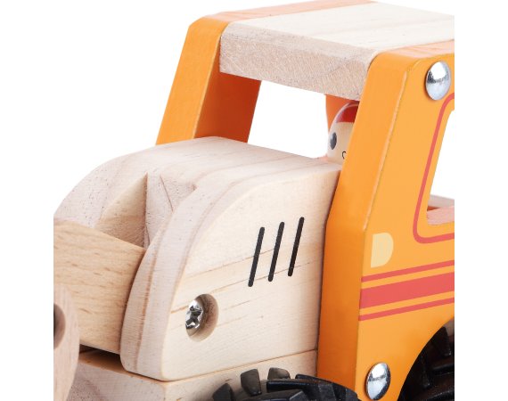 En cool trägrävare som låter barnen fördjupa sig i arbetet på en byggarbetsplats. Den flyttbara gripen gör det extra roligt att samla in och flytta småsaker, och de stora hjulen gör maskinen lätt att flytta runt.