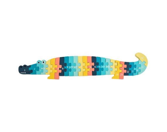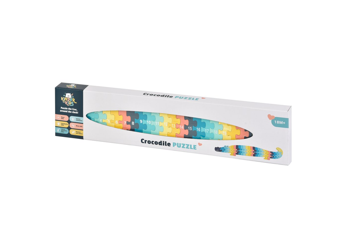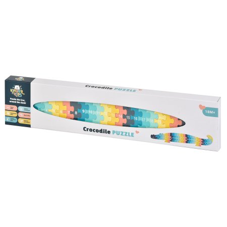 När krokodilen samlas stärks barnets känsla för logik och koncentration, samtidigt som det lär sig genom lek. De färgglada bitarna gör pusslet inbjudande och roligt att arbeta med.