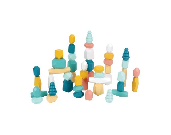 Barnen kan leka ensamma och öva på att få stenarna att stå, eller så kan de bygga tillsammans och tävla om vem som kan göra det högsta tornet utan att det välter. Leken stärker koncentrationen och tålamodet och ger samtidigt utrymme för fri fantasifull lek.