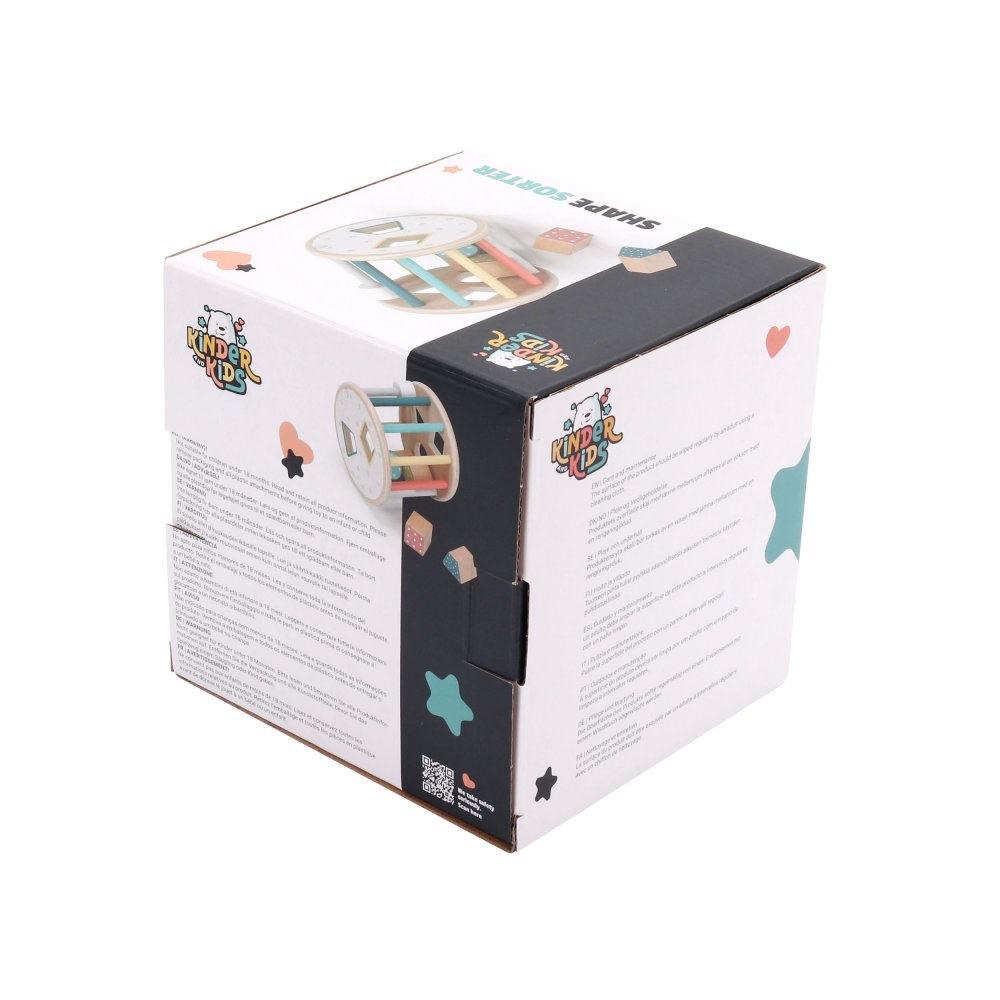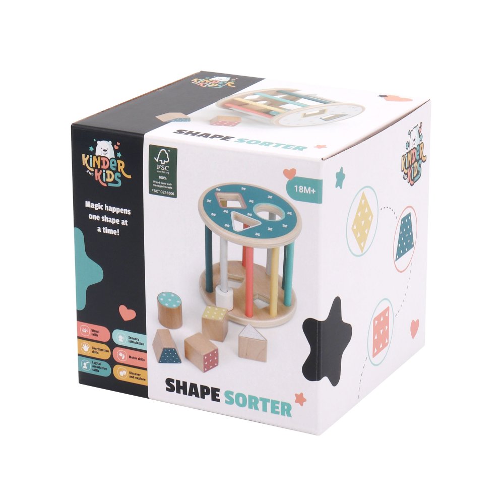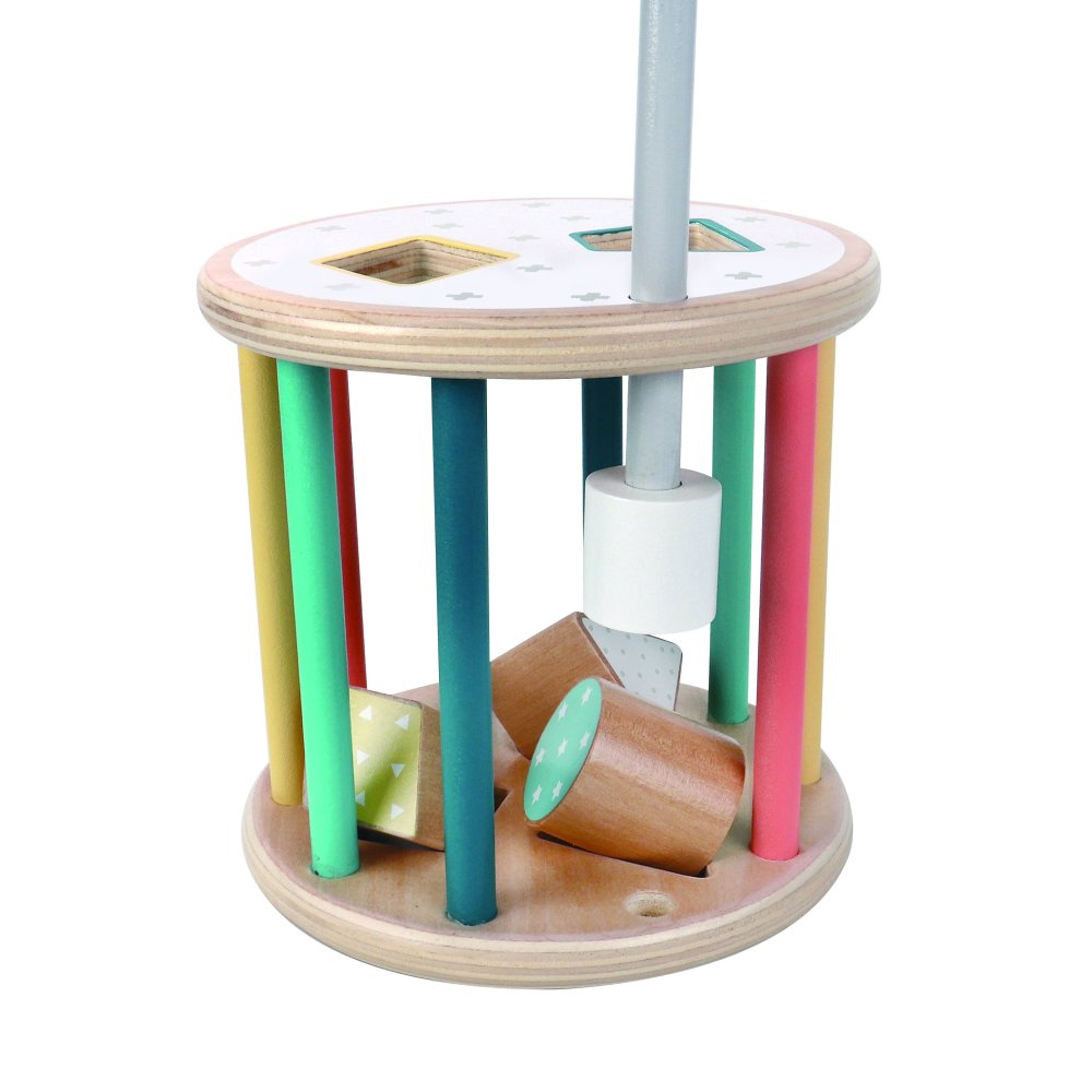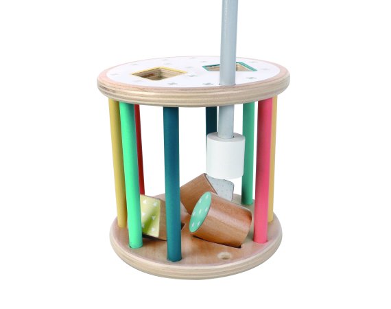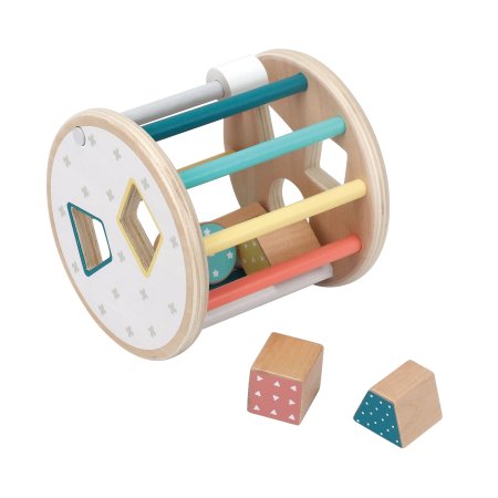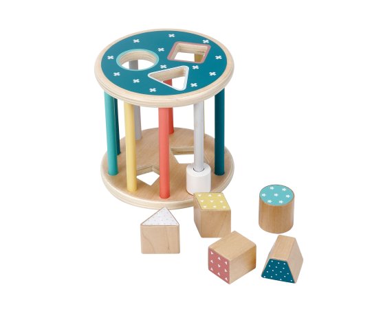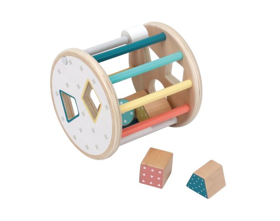 En sorteringslåda med en rolig twist – den här runda modellen kan rulla! Detta ger en extra utmaning när barnen ska hitta rätt form och passa in klossarna i hålen medan lådan rullar iväg.