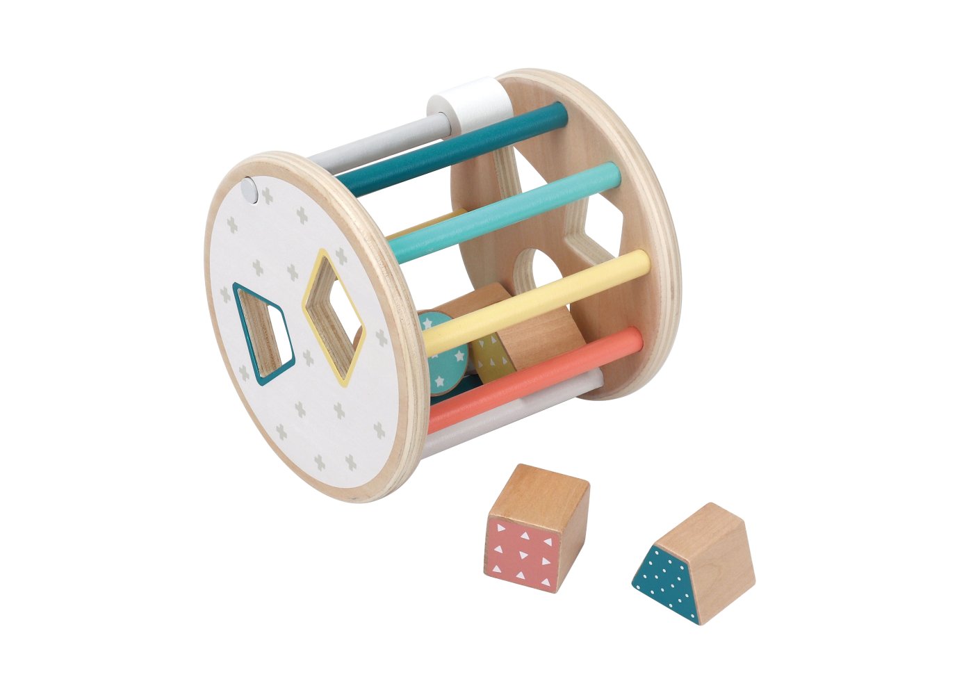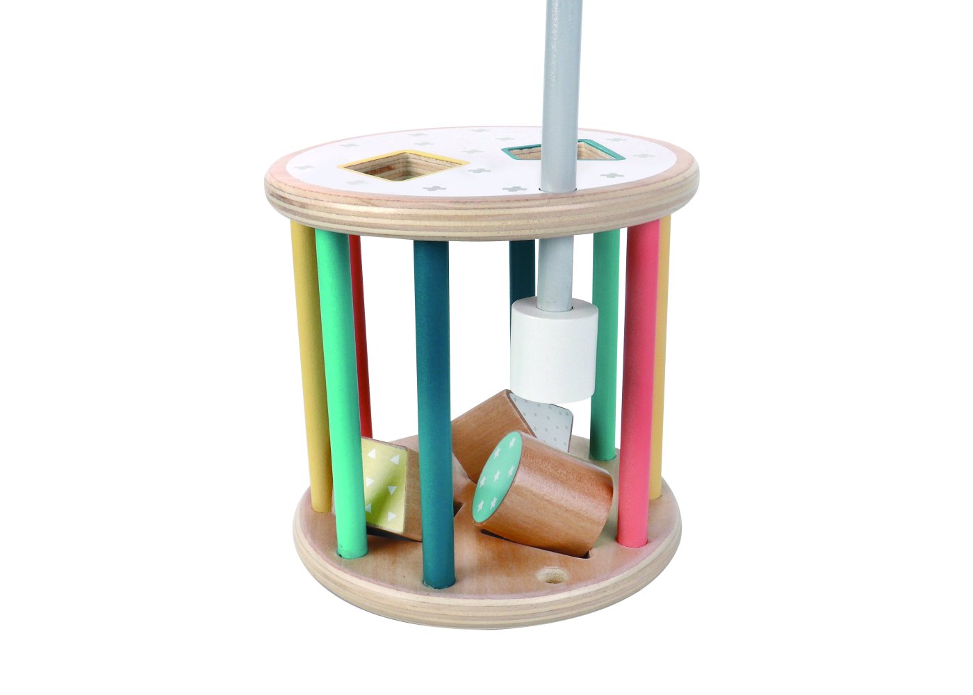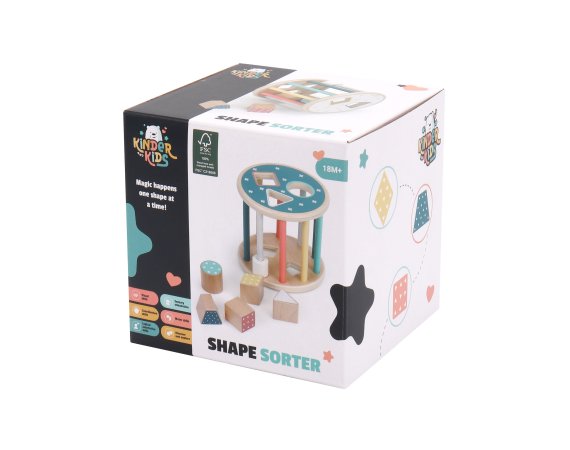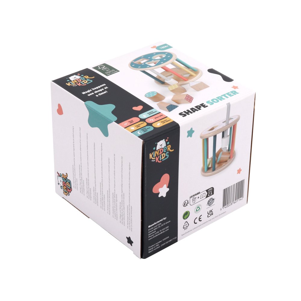 En sorteringslåda med en rolig twist – den här runda modellen kan rulla! Detta ger en extra utmaning när barnen ska hitta rätt form och passa in klossarna i hålen medan lådan rullar iväg.