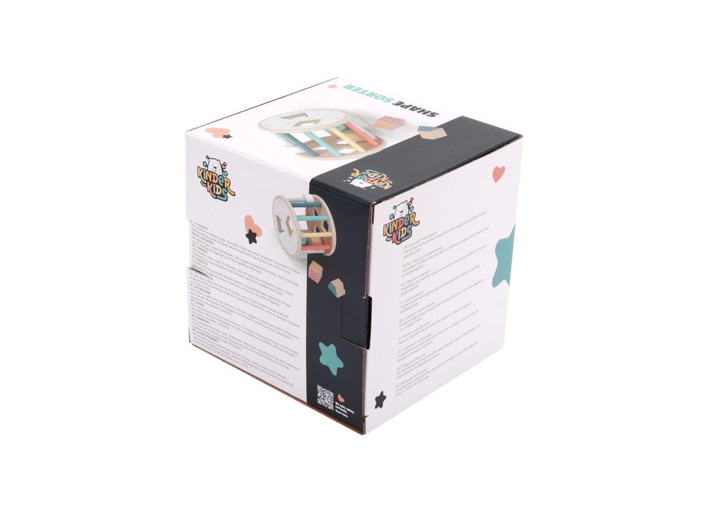 De färgglada klossarna är lätta för små händer att greppa, och leken blir snabbt en kombination av formigenkänning och rörelse när barnet kryper efter den rullande lådan. På så sätt blir leken aktiv, annorlunda och ständigt rolig.