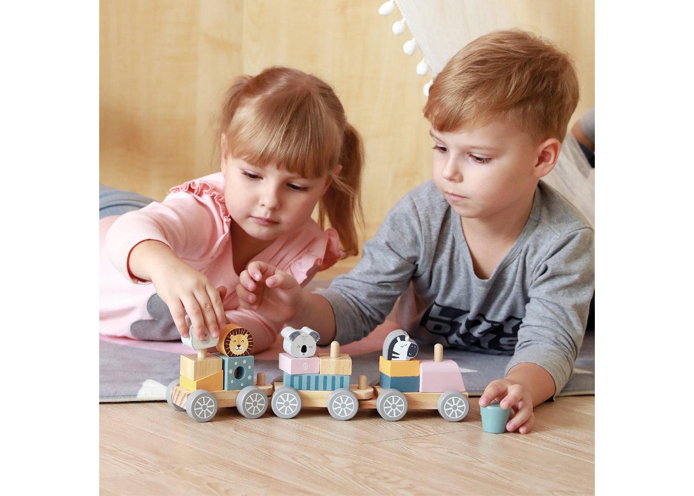Setet består av fina klossar och djur. Setet är utformat för små barnhänder med avrundade hörn så att ingen kan skadas.