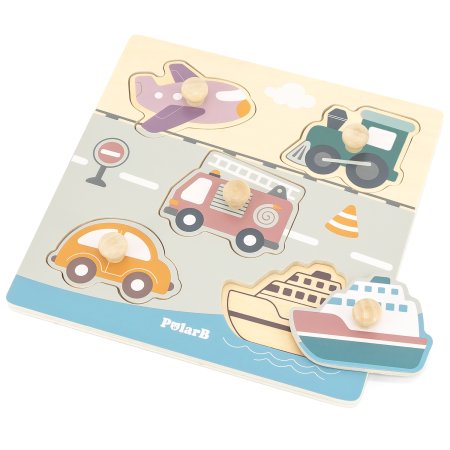 Pusselbitar med träknoppar som gör det enkelt för barnet att greppa bitarna.