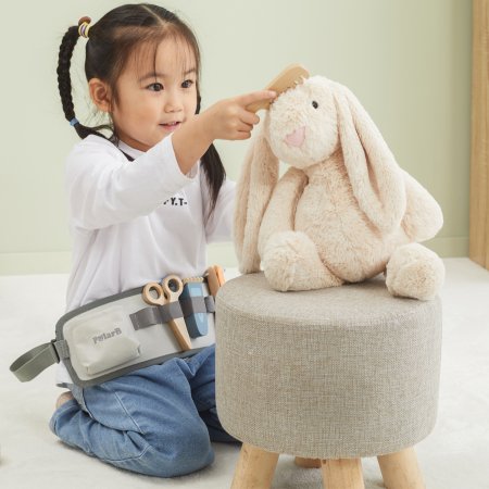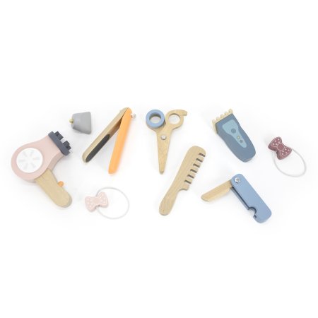 Frisörbältet sitter runt midjan, och den lilla frisören är redo att klippa mormor eller kanske farmor.