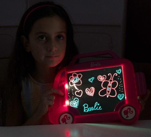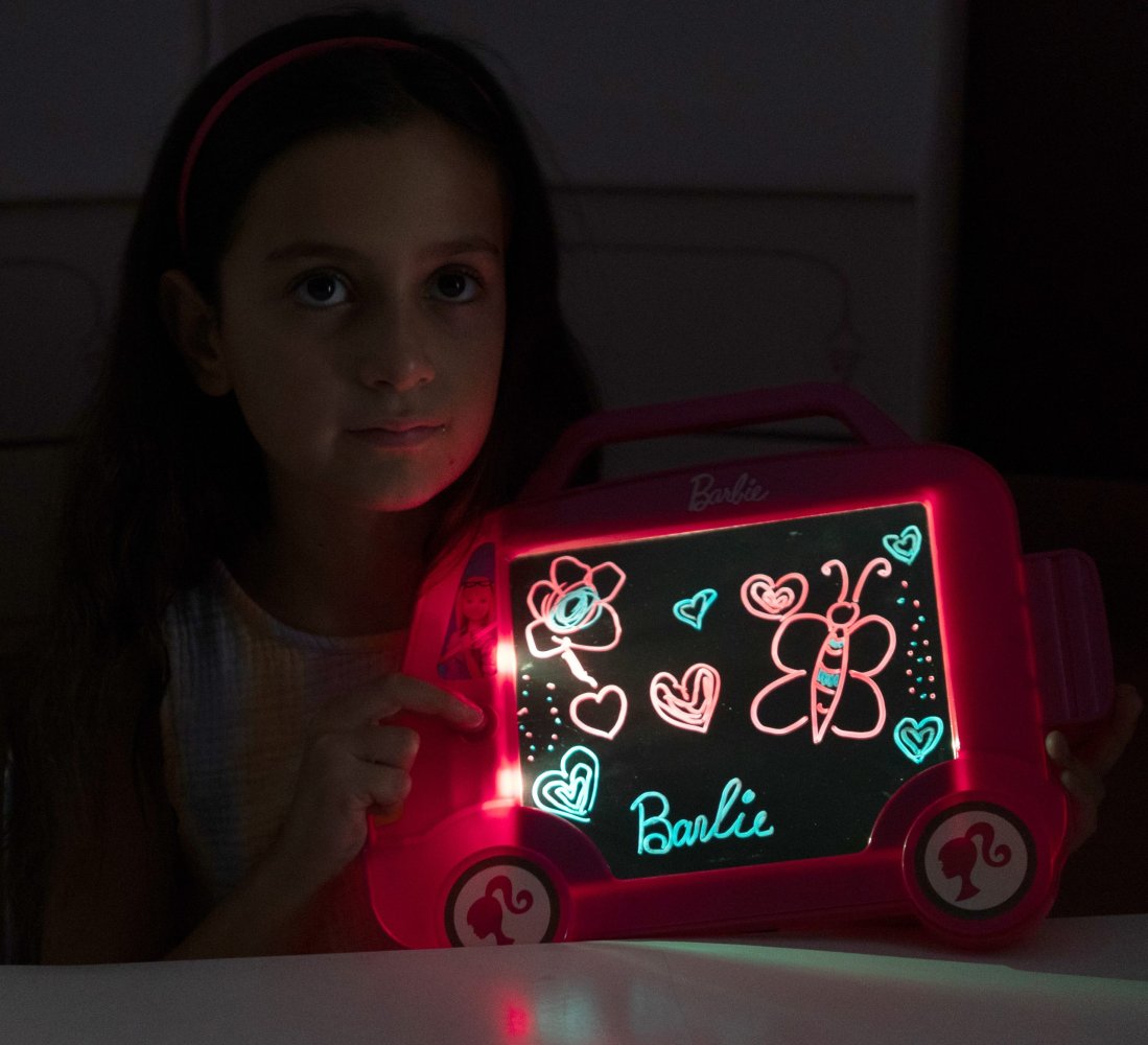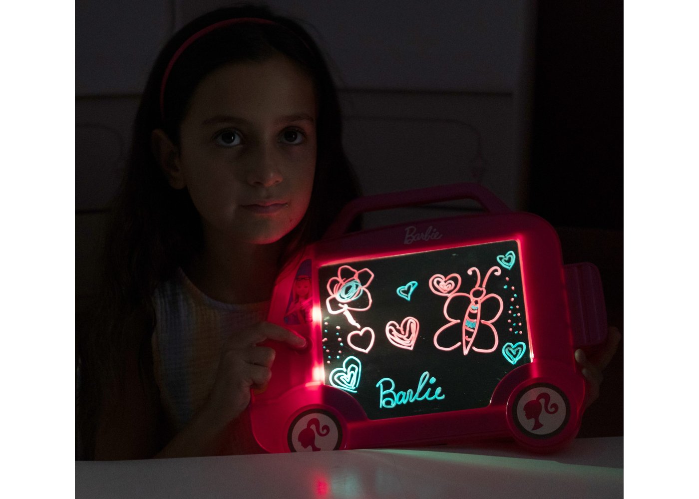 Här får du en härlig Barbie ritplatta med snygga LED-lampor för många timmars underhållning.