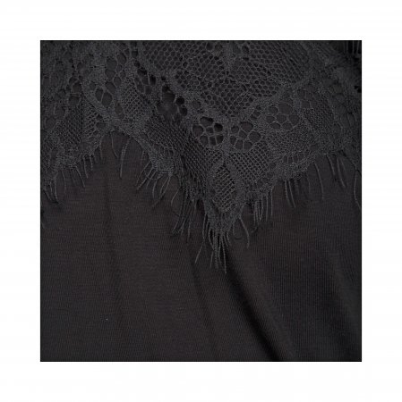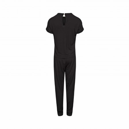 Klassisk och smart svart byxdräkt med spetsdetaljerFin byxdräkt med korta ärmar, rund hals och elastisk midja.