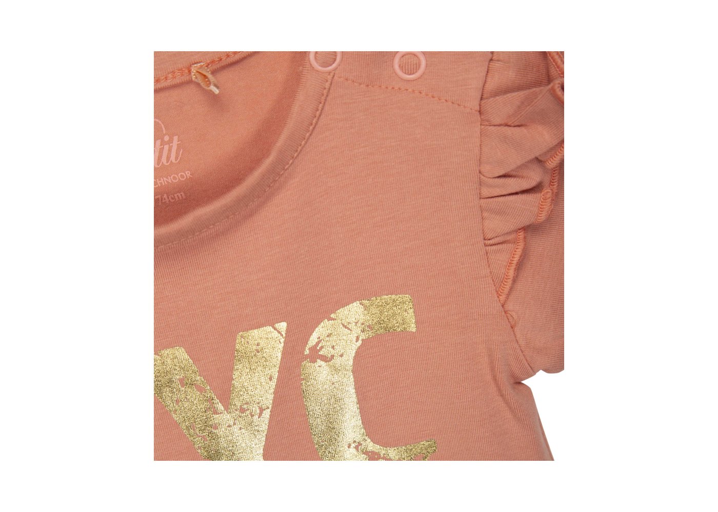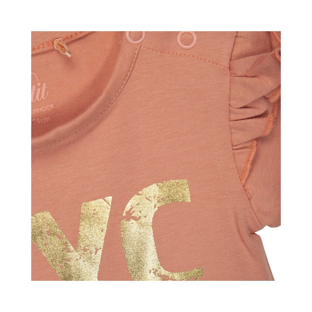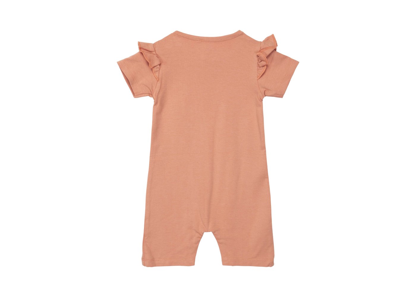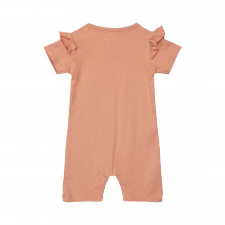 Söt romper med korta ärmar och snyggt NYC-tryck på framsidanDräkten har söta volangkanter på axlarna och stängs med tryckknappar på vänster axel och hela vägen mellan benen.