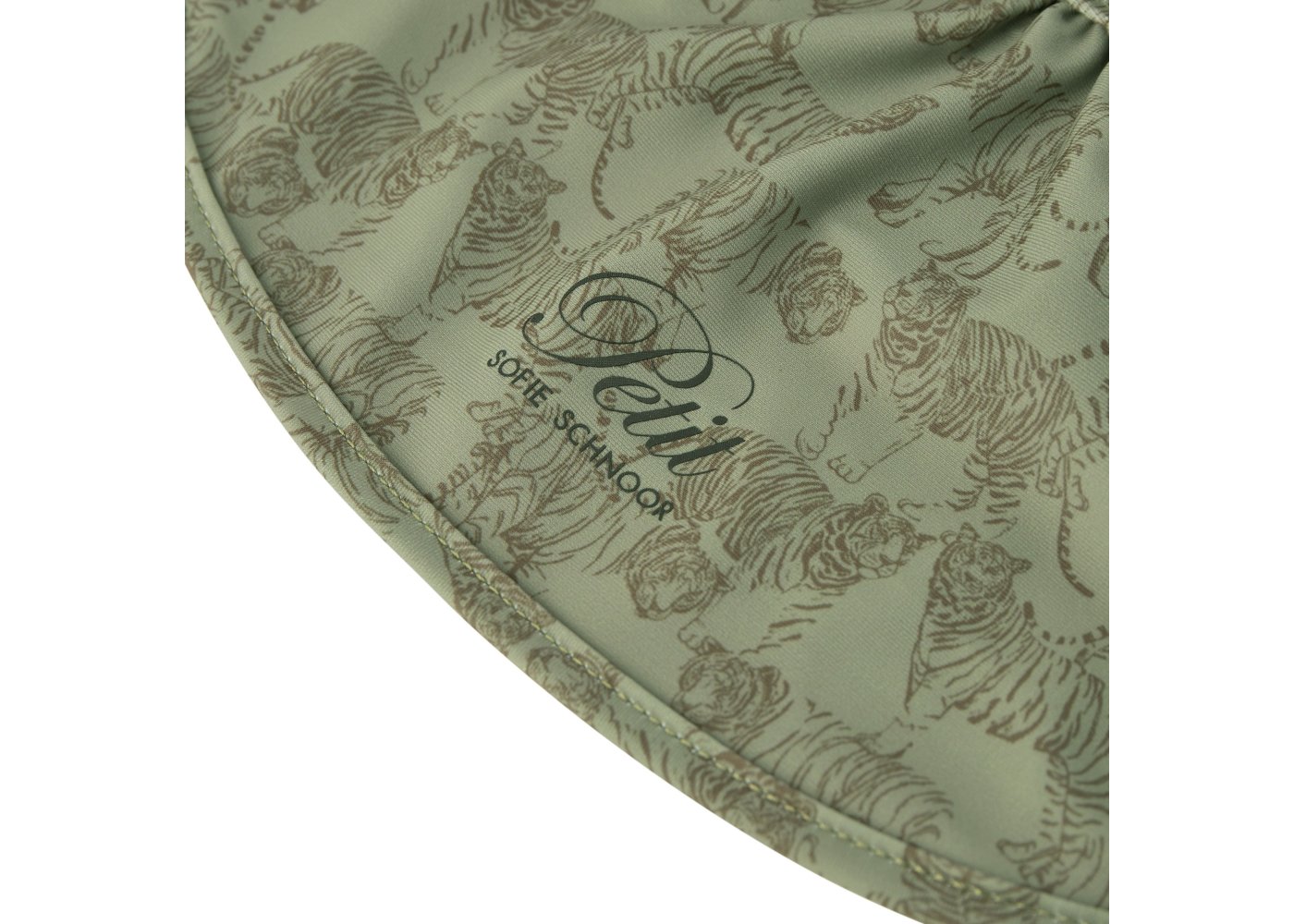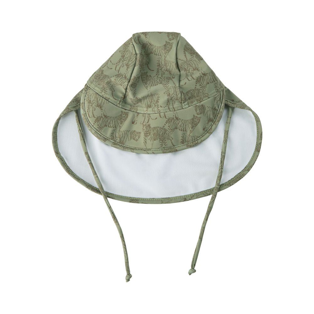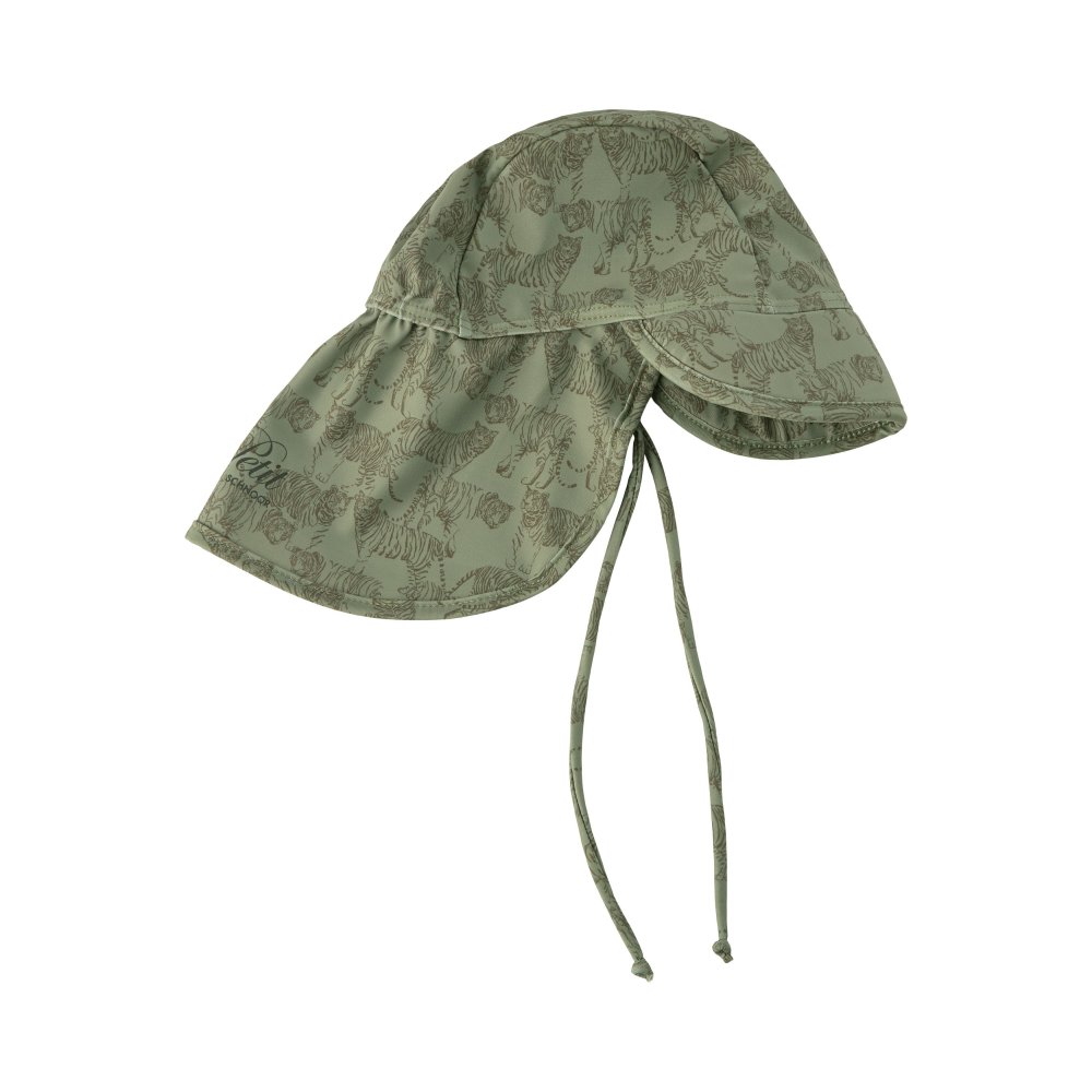Solhatt i grönt med farligt tigertryck från Petit by Sofie Schnoor