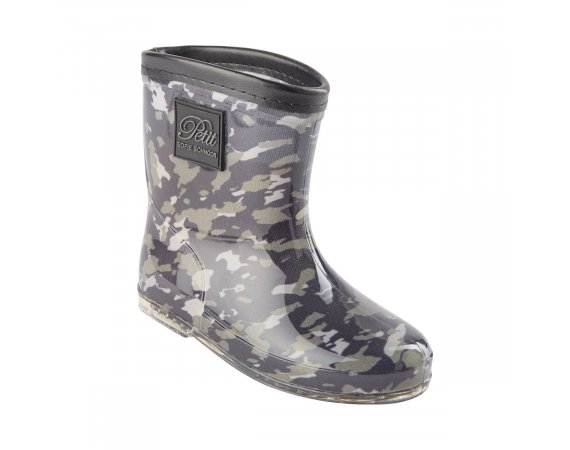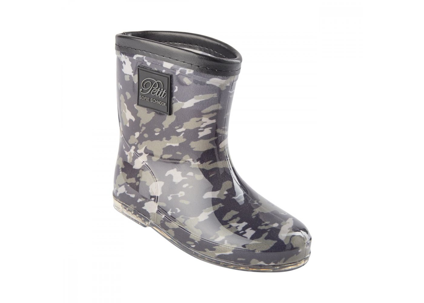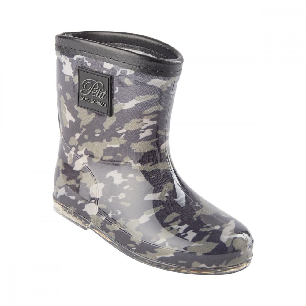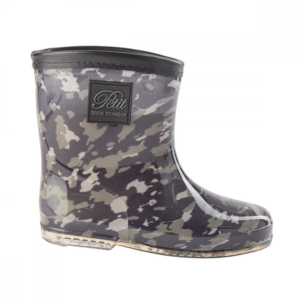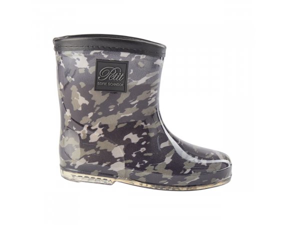 Smarta gummistövlar i kamouflagegrön från Petit by Sofie Schnoor.Gummistövlarna är gjorda av 100% PVC