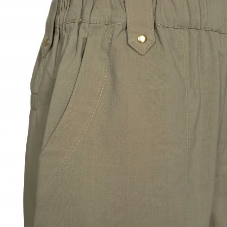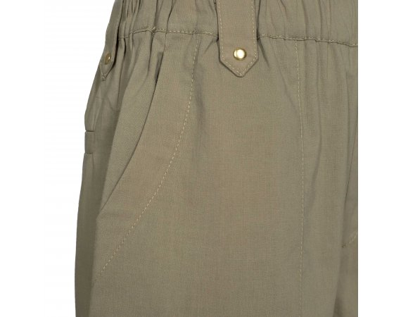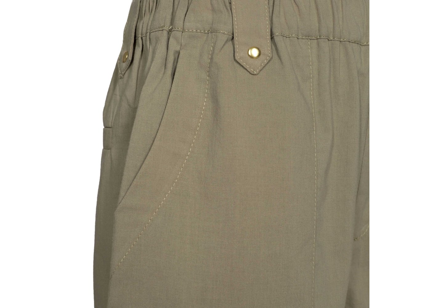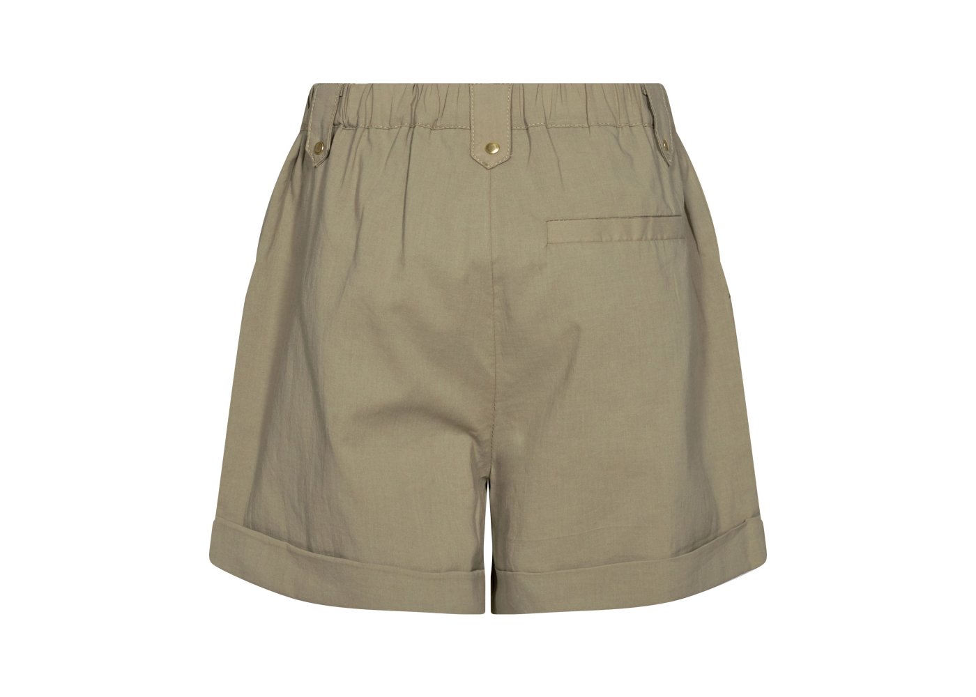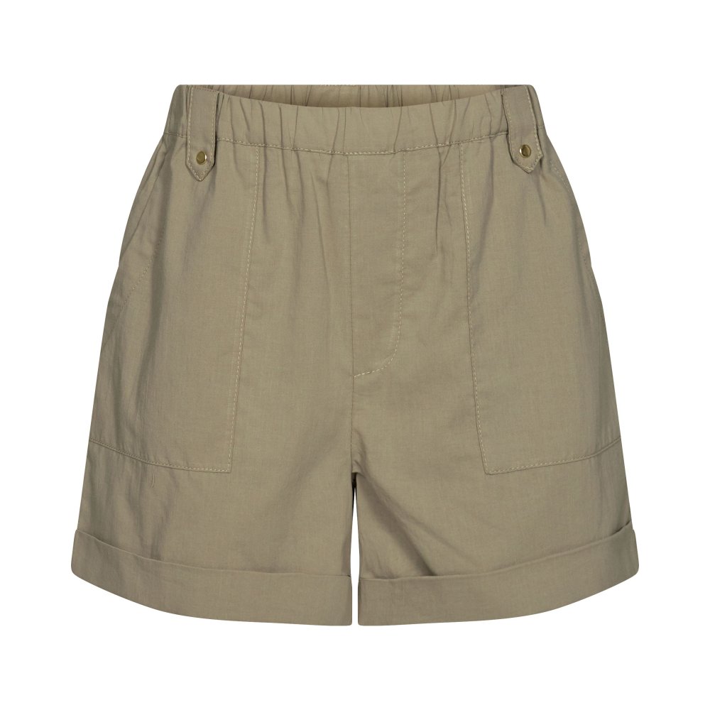 Shortsen har framfickor, resår i midjan och bälthål med fina guldnitar.