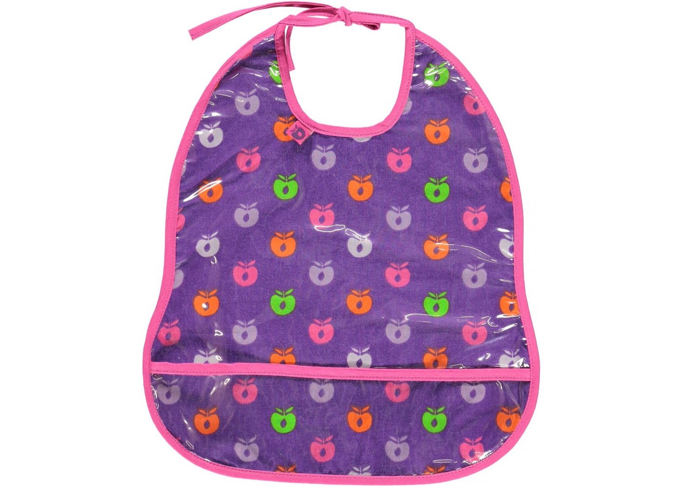 Vi tycker att denna fina och färgglada haklapp från Småfolk med tryckta äpplen i vackra färger är riktigt fin.