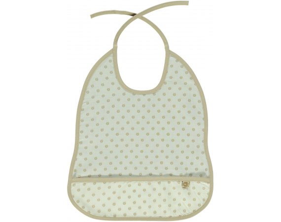 Haklappen har en belagd yta, vilket är praktiskt. För det första kan haklappen lätt torkas av och rengöras och mjölk som spills på haklappen försvinner så att ditt barn undviker att få våta kläder.
