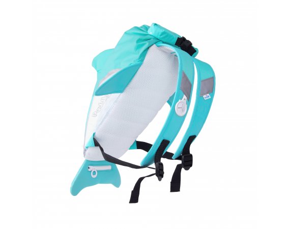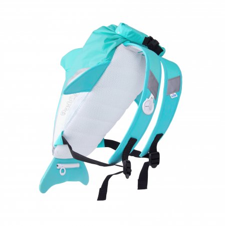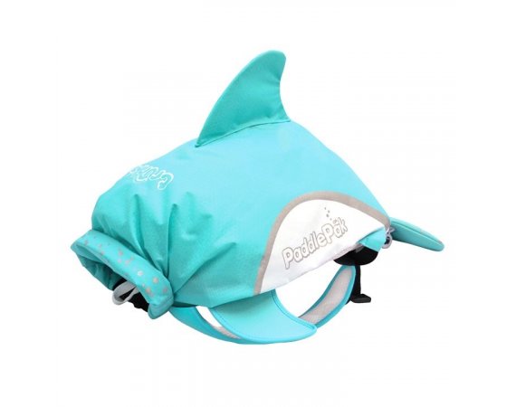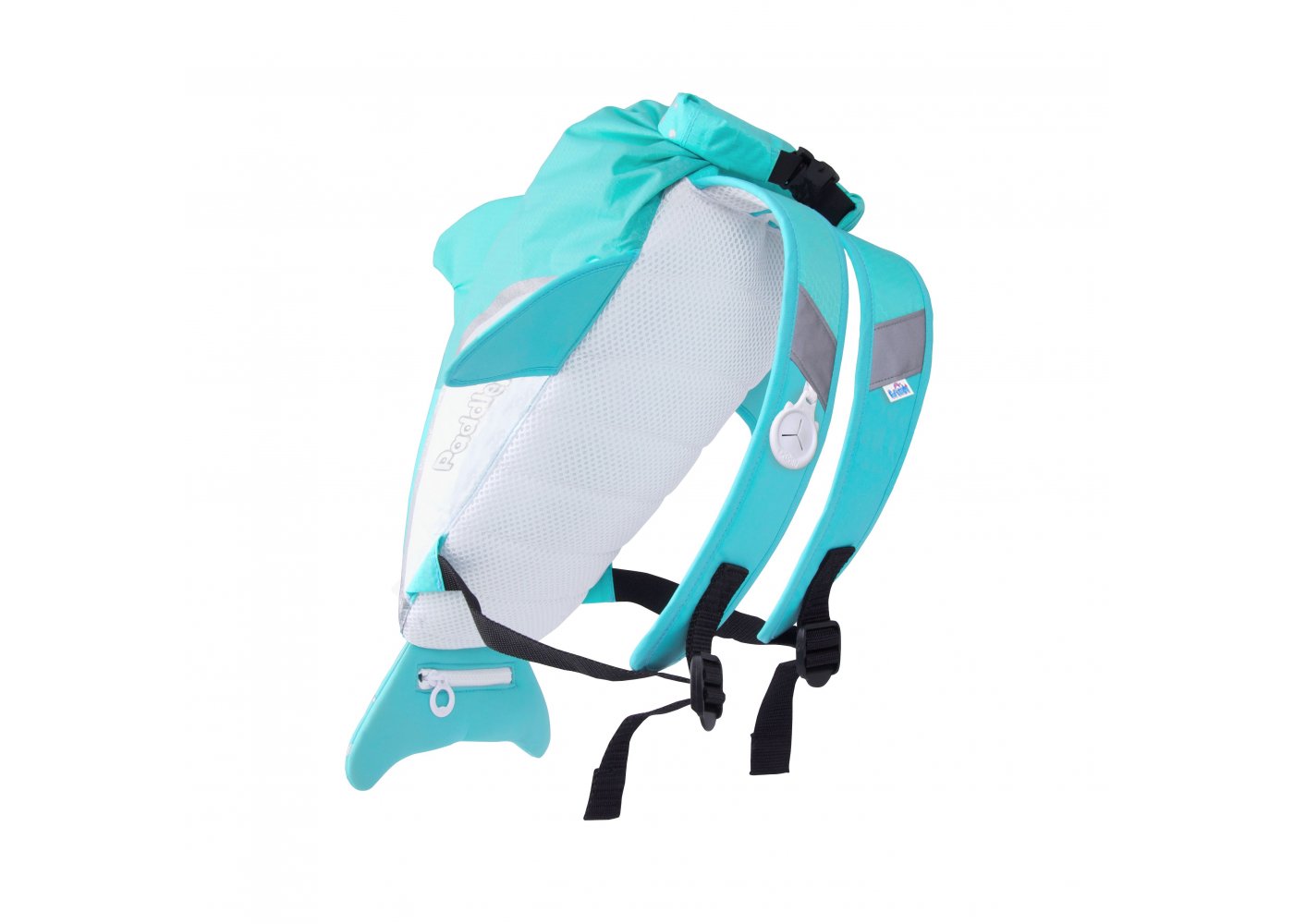 Smart och praktisk ryggsäck i turkosblå med delfinfena från PaddlePak.Ryggsäck med justerbara remmar, vaddering i ryggen och tillverkad av vattenavvisande lättviktigt material. Ryggsäcken har en vikbar förslutning som gör den helt tät och motståndskraftig mot väder och vind. Ryggsäcken har fina reflexer och en ficka till småsaker.