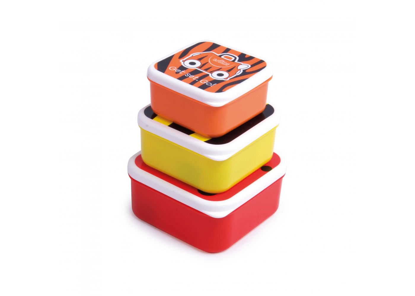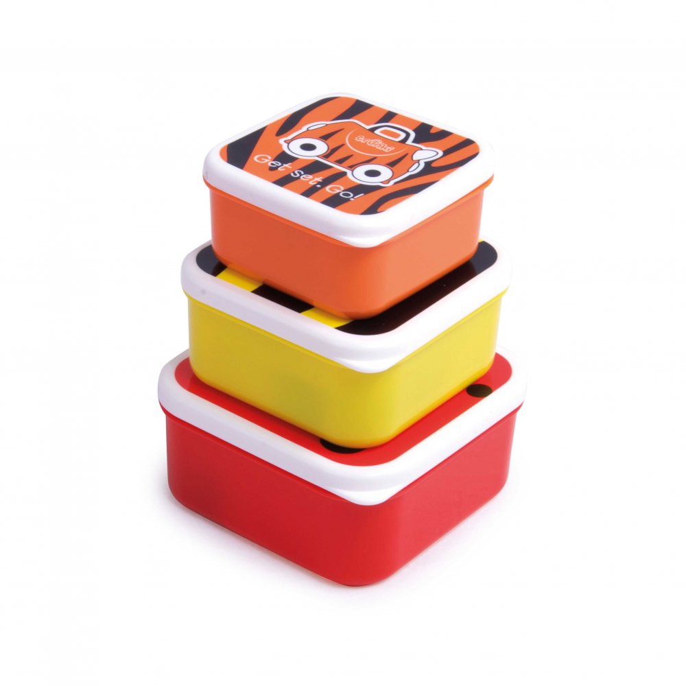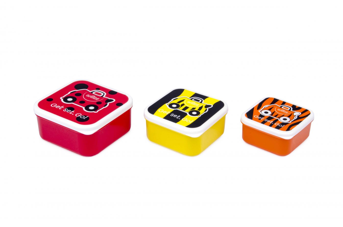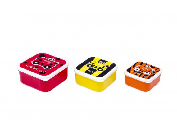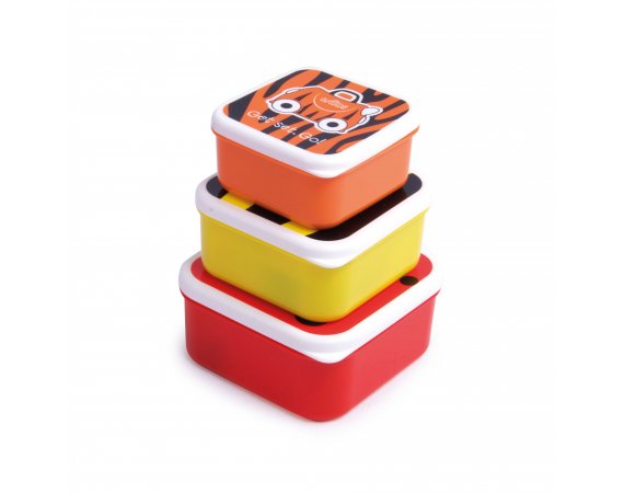 Tre fina matlådor från Trunki.Madlådorna har olika storlekat och ett fint motiv på locket. Ett lock är med Bernard, ett med Harley och ett med Tipu, som också finns som barnresväskor från Trunki.