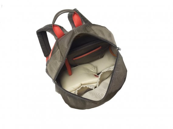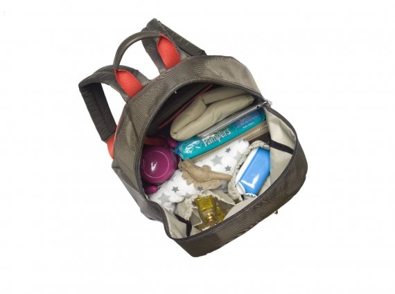 Det är en mycket funktionell skötryggsäck med både fickor till blöjor samt en mat- och flaskpåse med isolerat flaskfack. Den termoisolerade flaskhållaren håller flaskan varm eller kall i upp till fyra timmar, beroende på temperaturen utomhus.